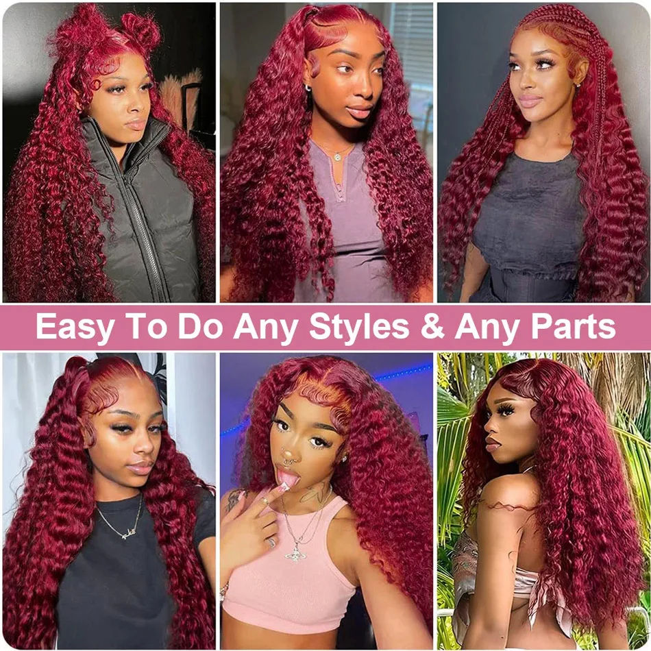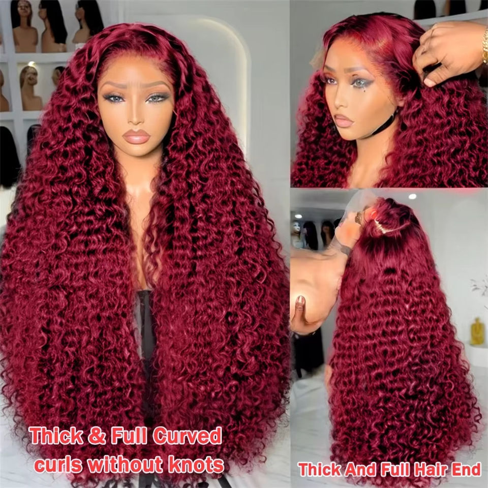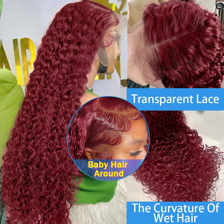 Pelucas de Cabello Humano con Frente de Encaje HD 13x6, 30-40 Pulgadas, Densidad 250, Color Borgoña 99j, Pre-Plucked, Transparente 13x4, Peluca Frontal de Encaje Roja