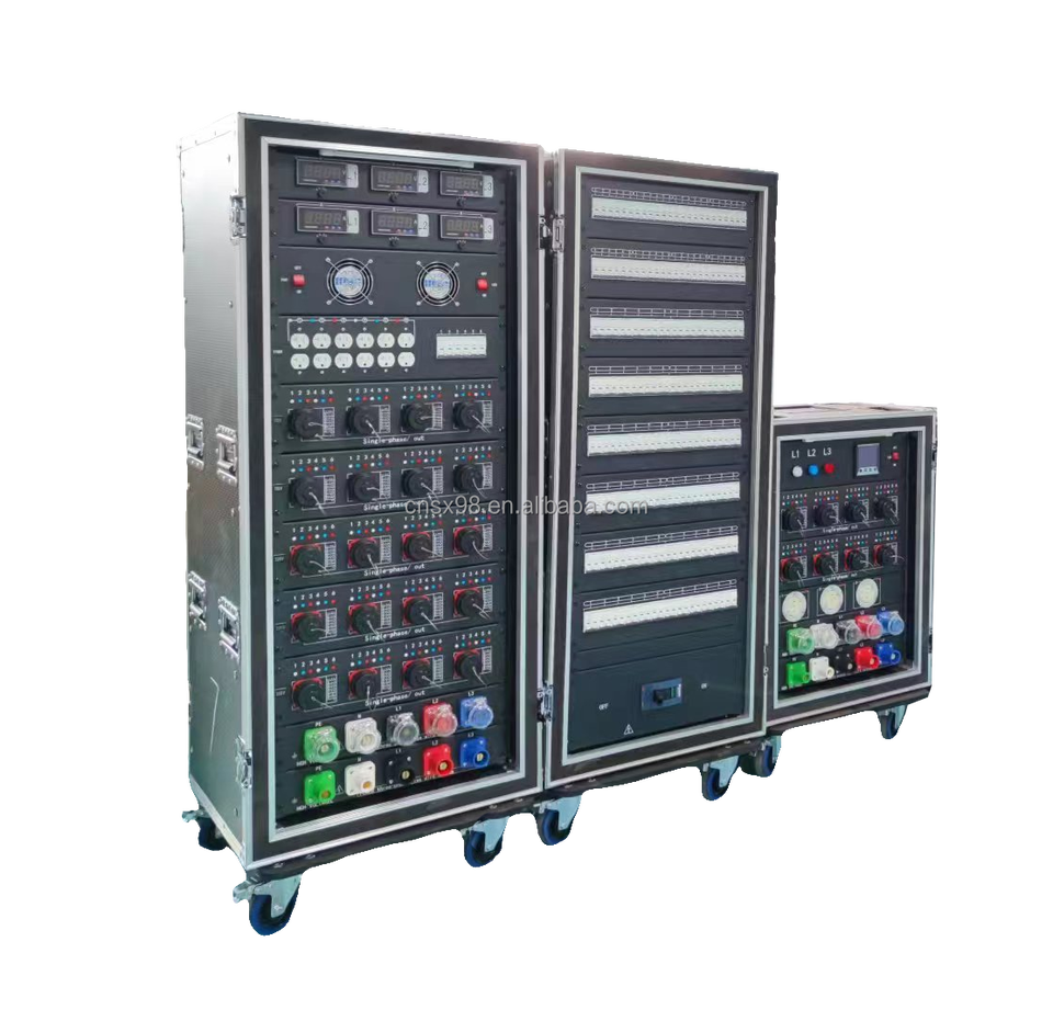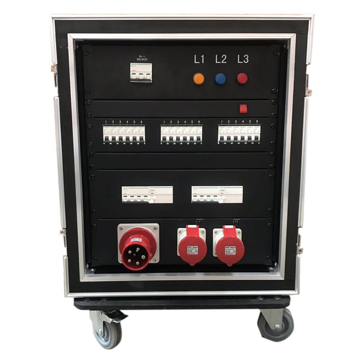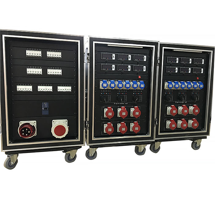 Rack de distribución de energía móvil de 30 canales 125A Entrada trifásica Salidas Socapex de 19 pines Salidas Socapex de 19 pines Caja de panel de fuente de alimentación