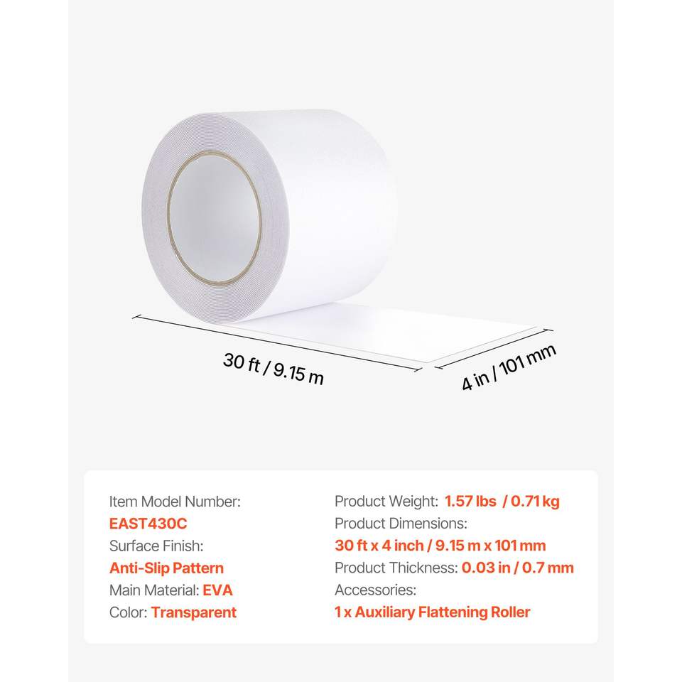 Cinta Antideslizante Transparente de 30 Pies x 4 Pulgadas, Ultra Transparente, para Uso en Interiores y Exteriores