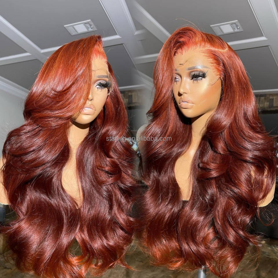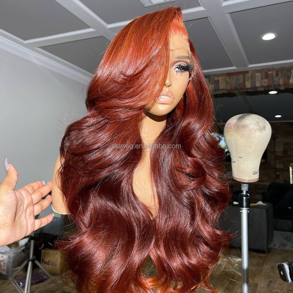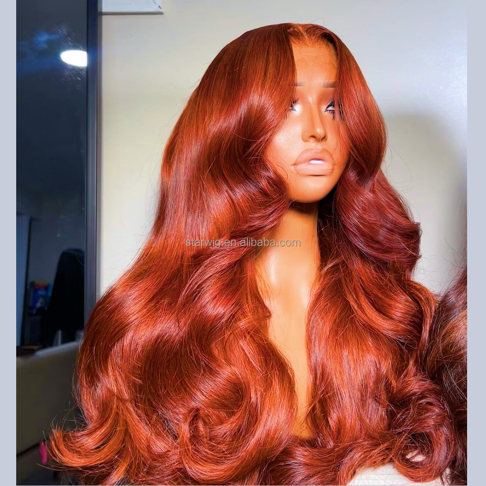 Peluca de Cabello Humano Brasileño Frontal de Encaje 13x4 de 30 Pulgadas con Ondas Sueltas Tono Naranja Jengibre para Mujeres, Peluca Frontal de Encaje HD 13x6 sin Pegamento y Pre-depilada