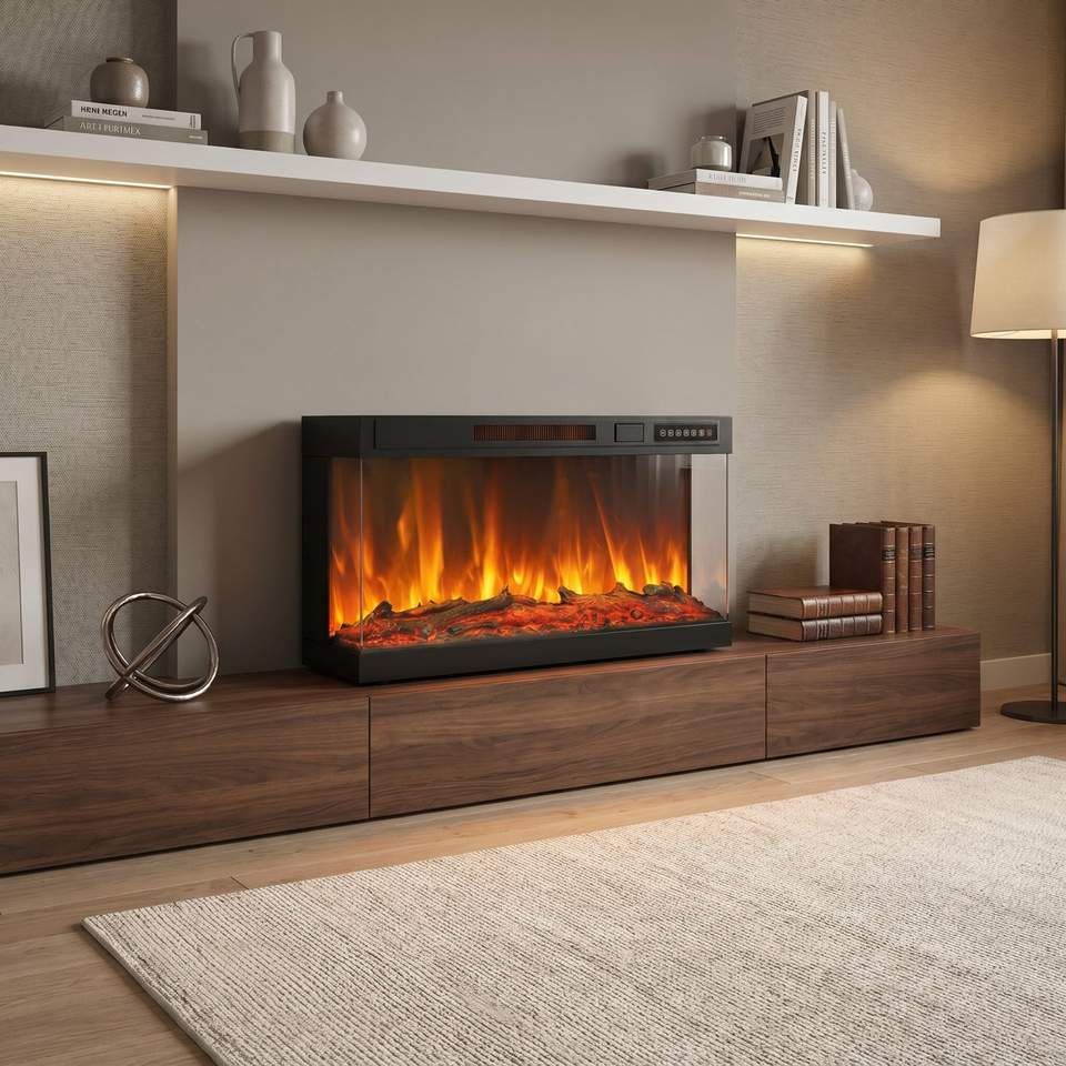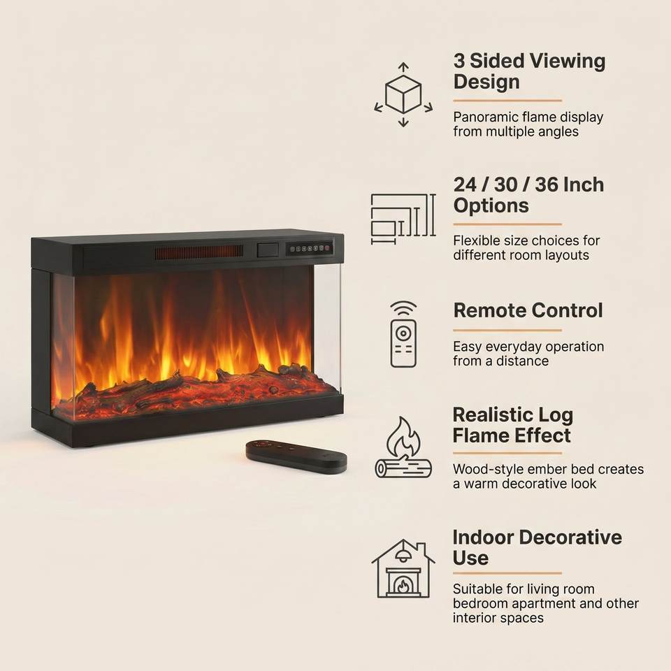 Chimenea Eléctrica de 30 Pulgadas y 3 Lados con Control Remoto, Llama Realista, para Sala de Estar, Dormitorio, Apartamento