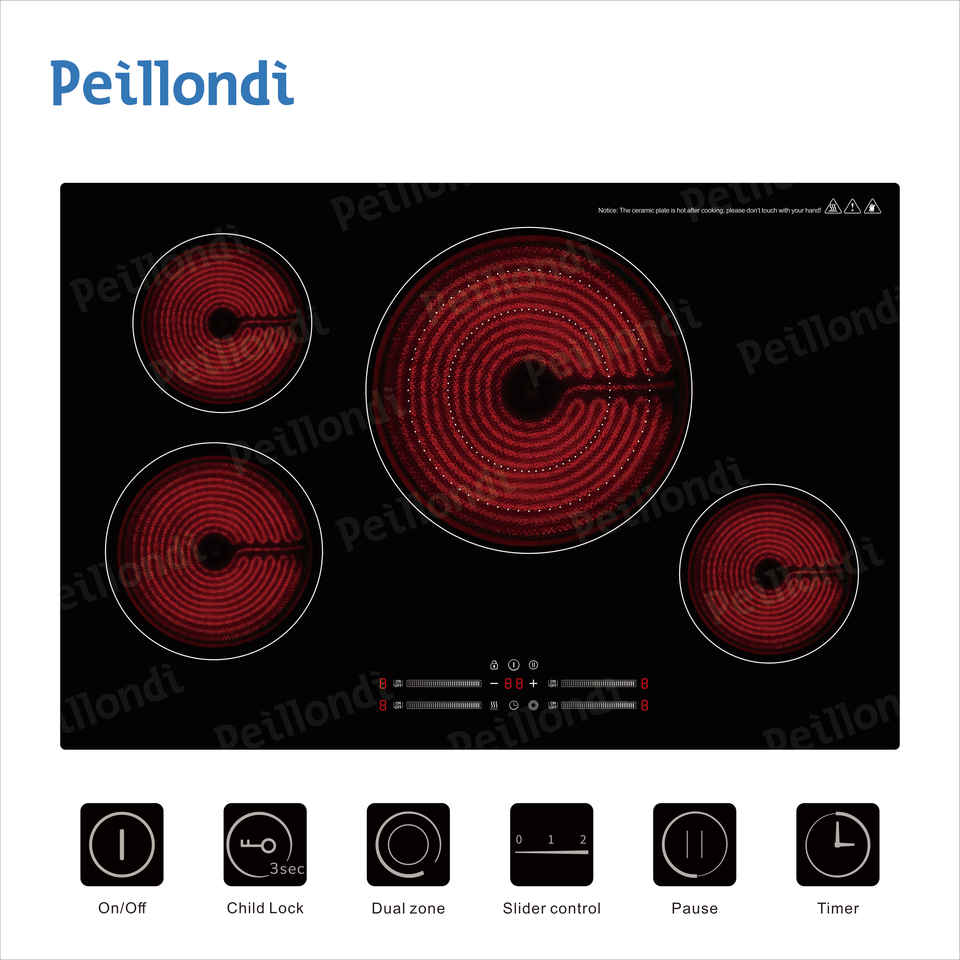 Control táctil deslizante de 30 pulgadas y 7200W ETL CETL FCC, 4 quemadores, vitrocerámica integrada, estufa eléctrica, estufa de cerámica