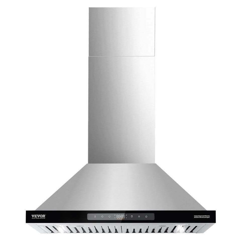 Campana extractora de techo tipo chimenea de 30 pulgadas, 800 CFM, de acero inoxidable, para cocina, con control por gestos, montaje en pared
