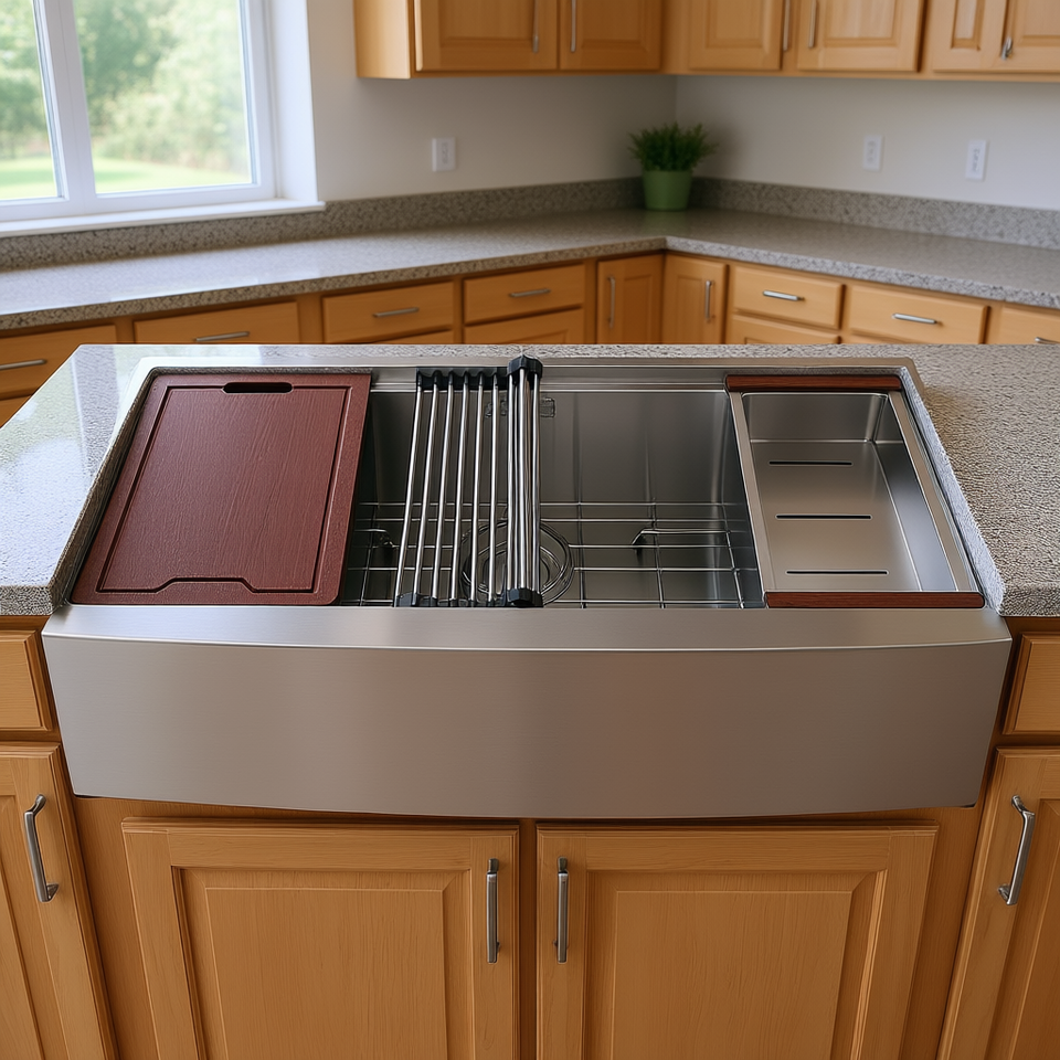 Fregadero de Cocina Estilo Farmhouse de 30 Pulgadas, Acero Inoxidable 304, de Una Sola Pieza, Superficie Cepillada, Multifuncional