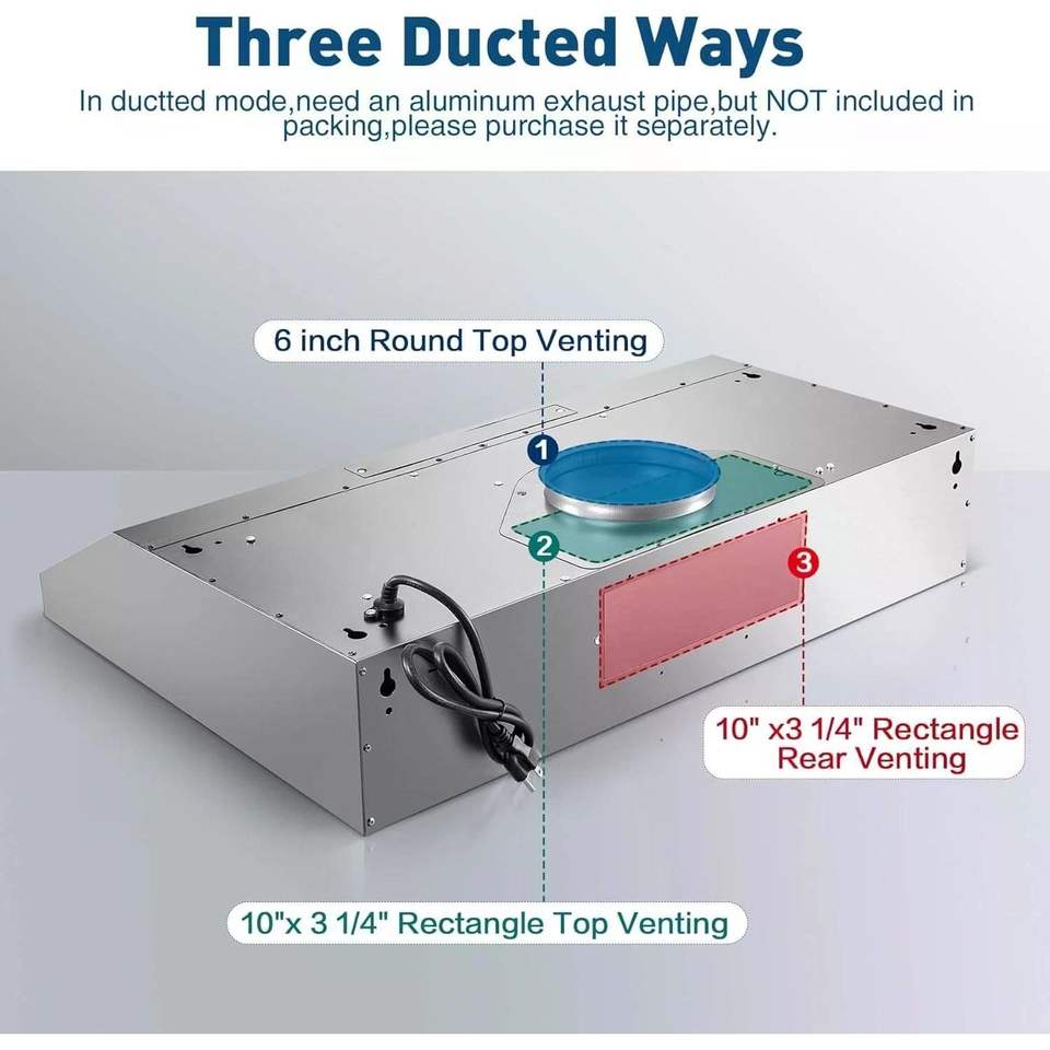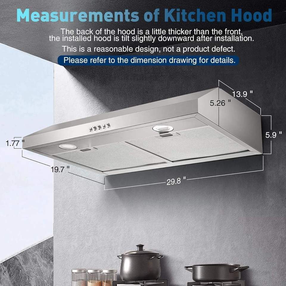 Campana Extractora de Acero Inoxidable de 30 Pulgadas para Debajo del Gabinete de Cocina con 500 CFM y 3 Velocidades
