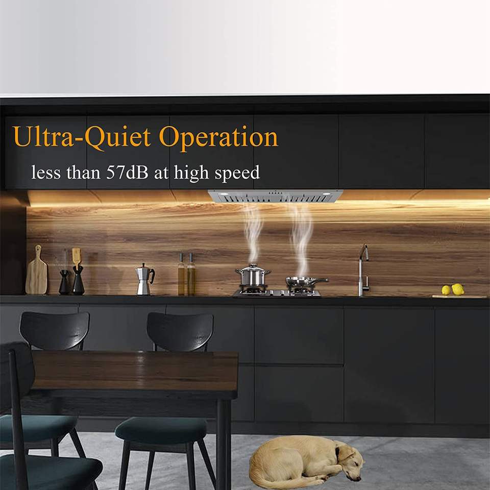 Campana extractora empotrable de acero inoxidable de 30 pulgadas, 600 CFM, con controles frontales, para cocina