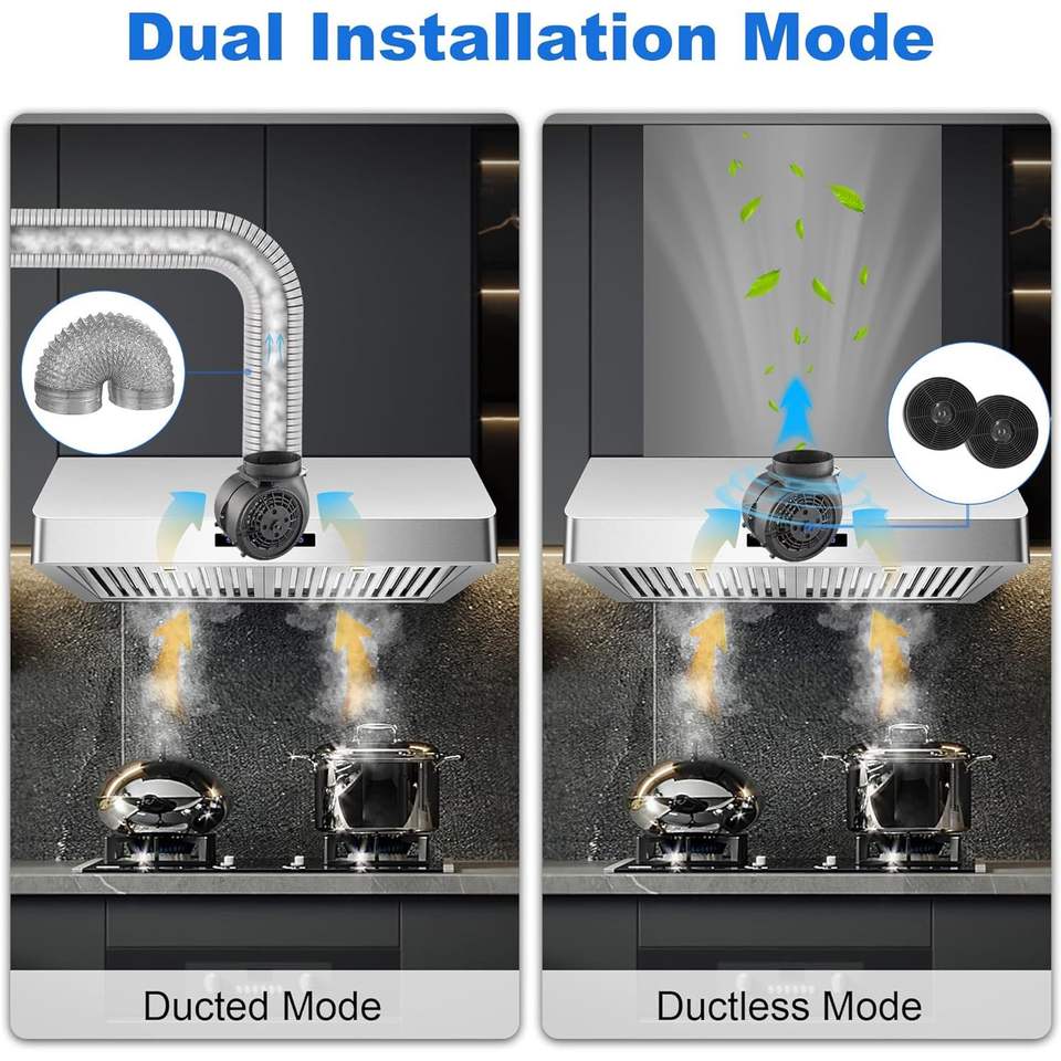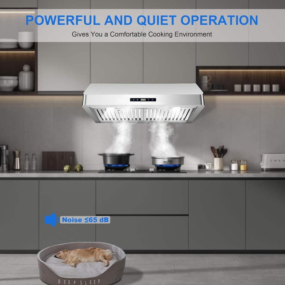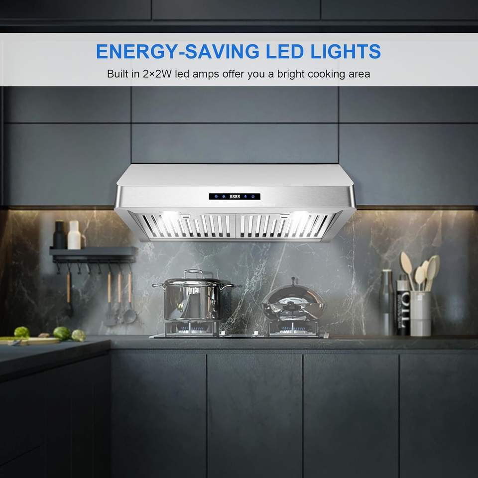 Campana Extractora de Acero Inoxidable de 30 Pulgadas con Control Táctil, Ventilador de Extracción de 600 CFM, 3 Velocidades con Ajustes de Tiempo, Campana Extractora para Mueble de Cocina