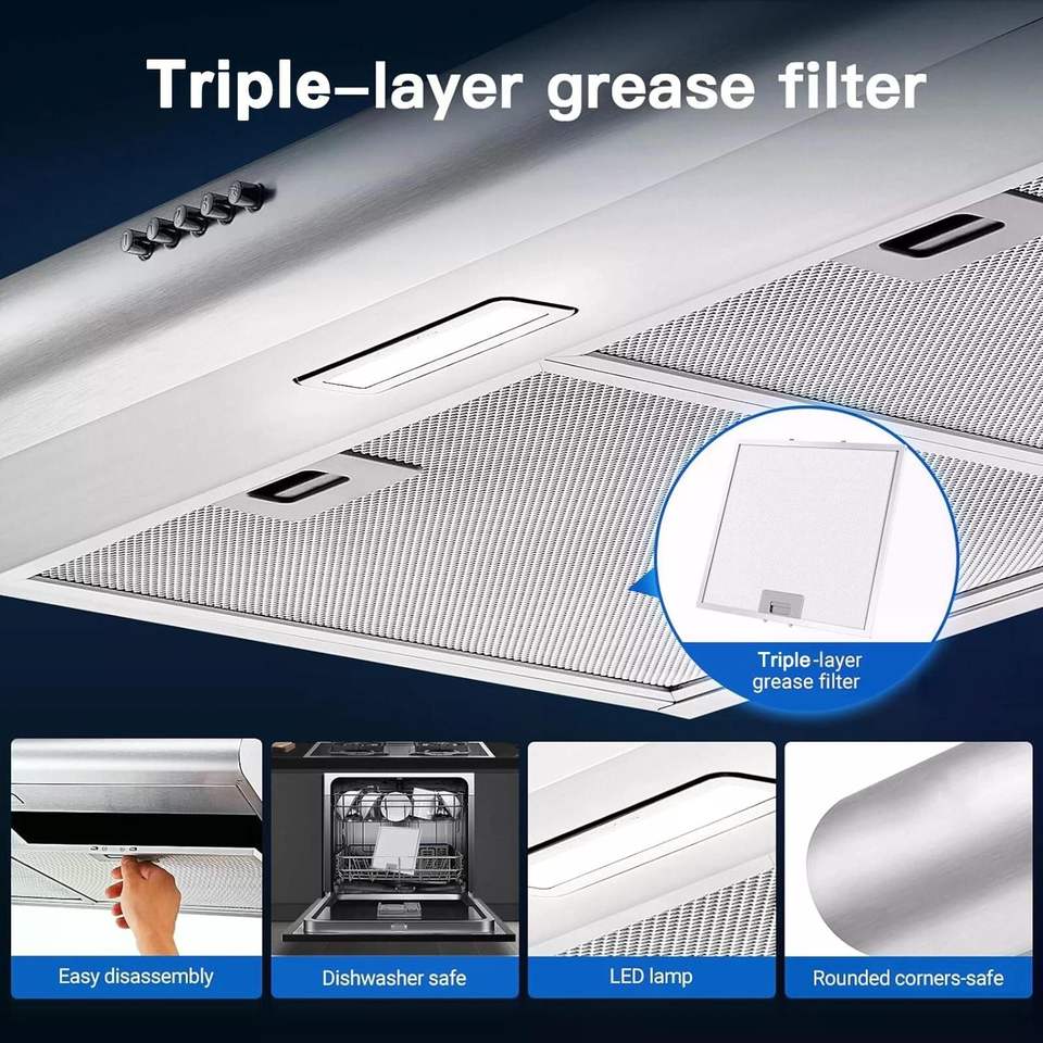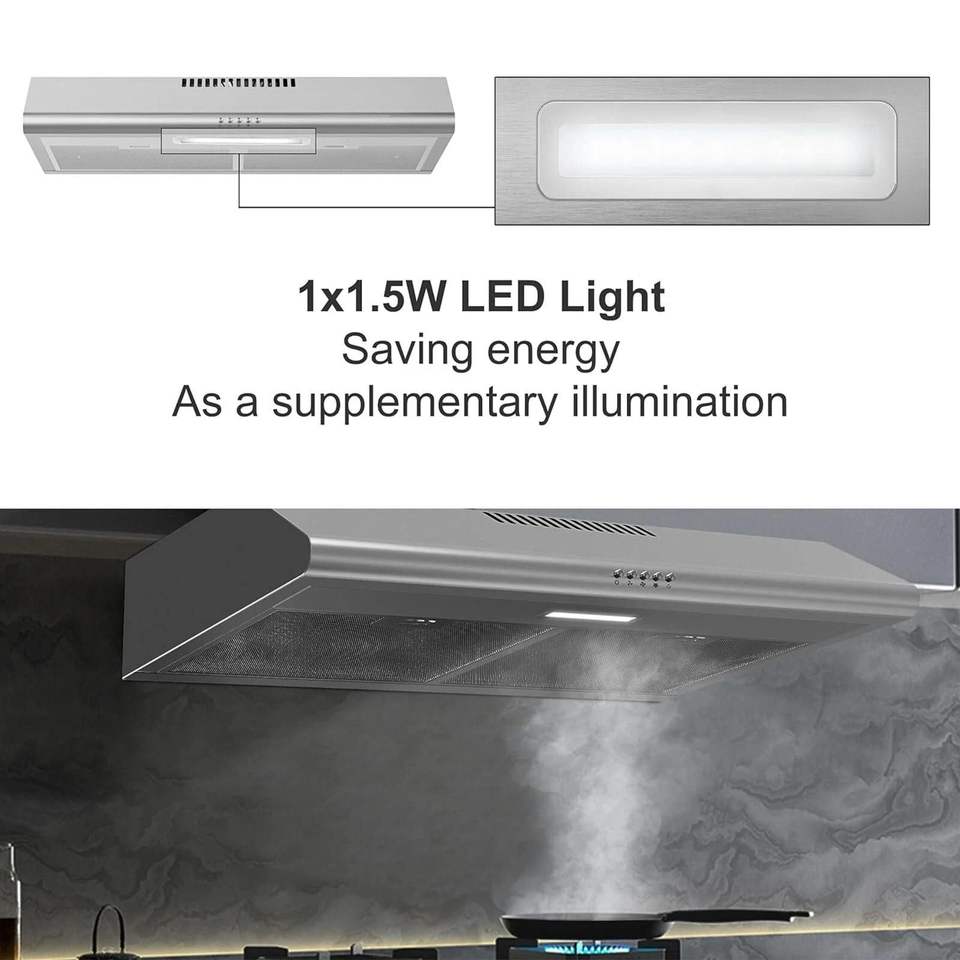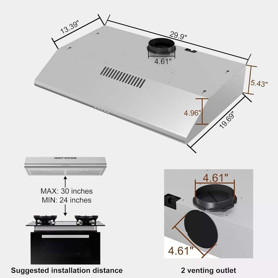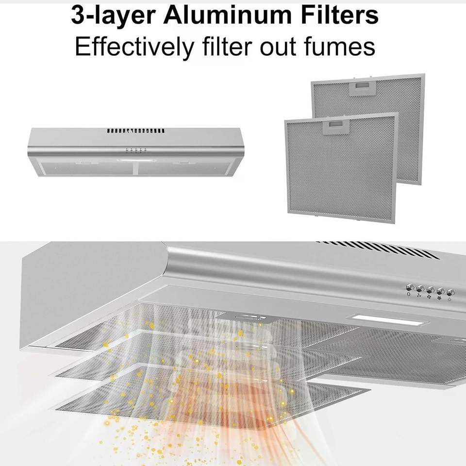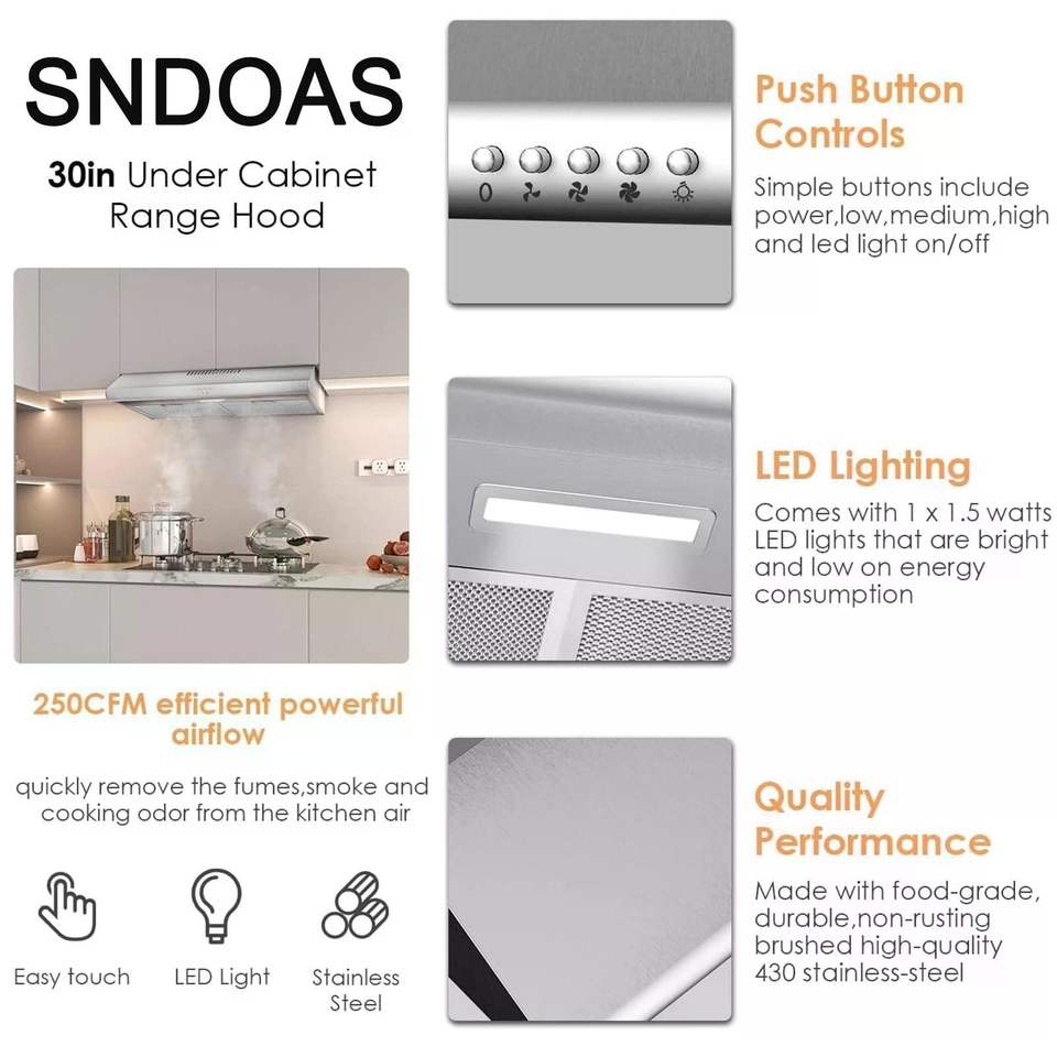 Campana extractora de acero inoxidable de 30 pulgadas para debajo del gabinete, 250 CFM, para cocina
