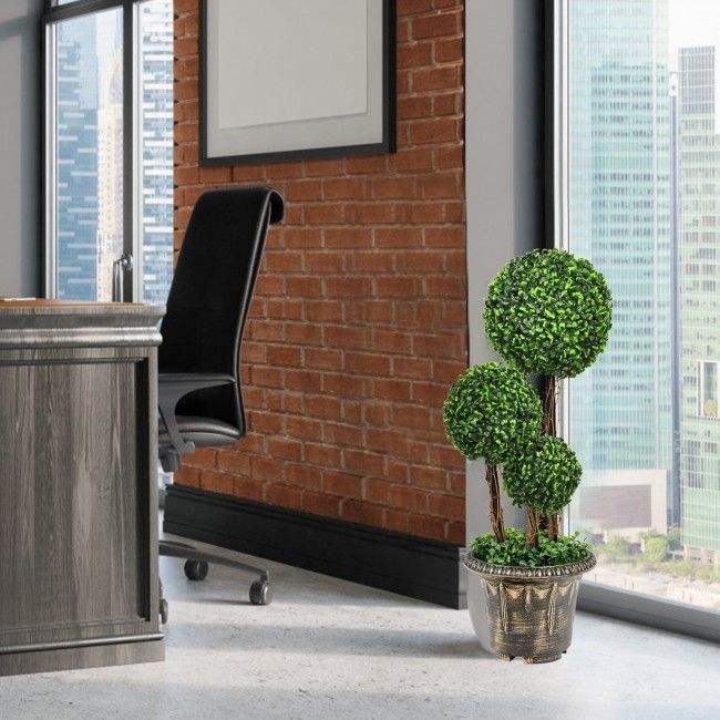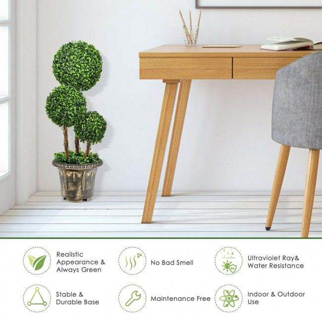 Árbol Topiario Artificial de 30 Pulgadas con Triple Bola y Protección UV para Uso en Interiores y Exteriores