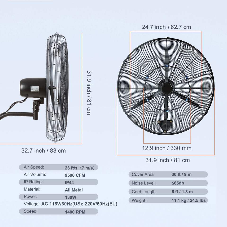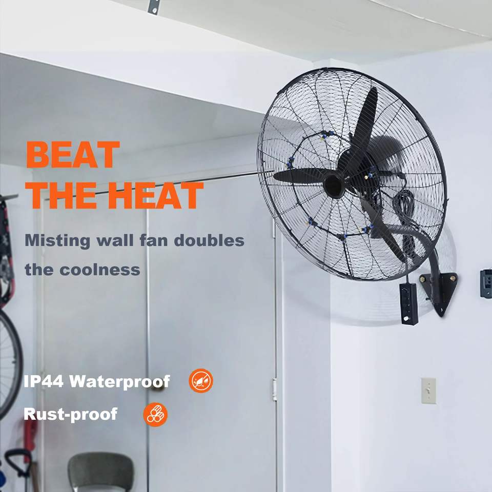 Ventilador de Pared de 30 Pulgadas con Nebulización, 3 Velocidades, Alta Velocidad, Máximo 9500 CFM, Resistente al Agua, Oscilante, Industrial, Comercial