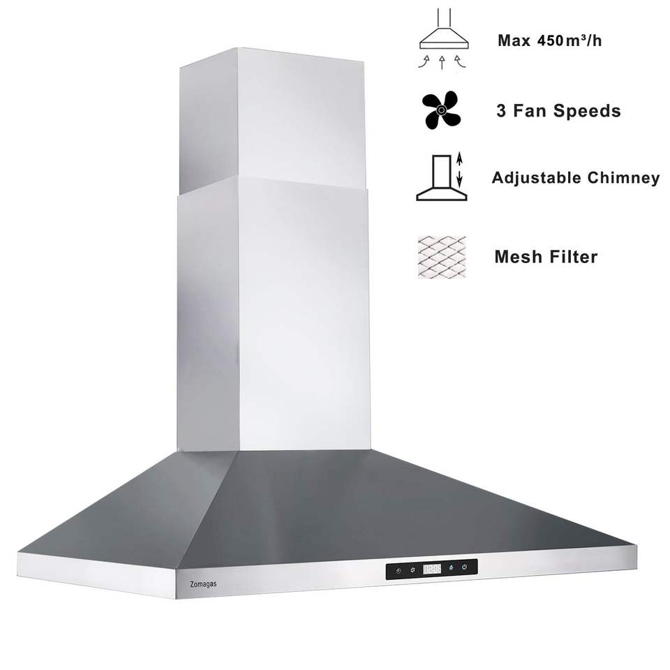 Campana Extractora de Pared de 30 Pulgadas, 450 CFM, Panel Táctil, Acero Inoxidable, Ventilación de Alto Rendimiento para Cocina
