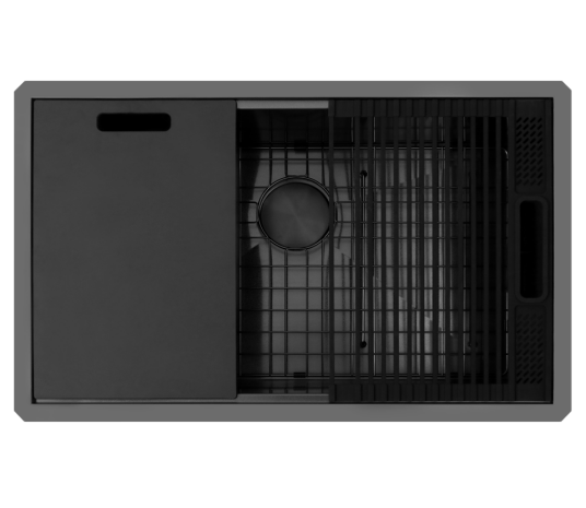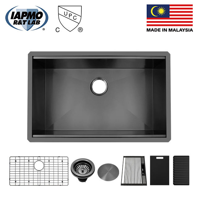 Grifo de cocina de acero inoxidable de un solo cuenco moderno de radio cero de 30 pulgadas hecho a mano de Malasia Nano estación de trabajo PVD NANO ZS-3019C-B