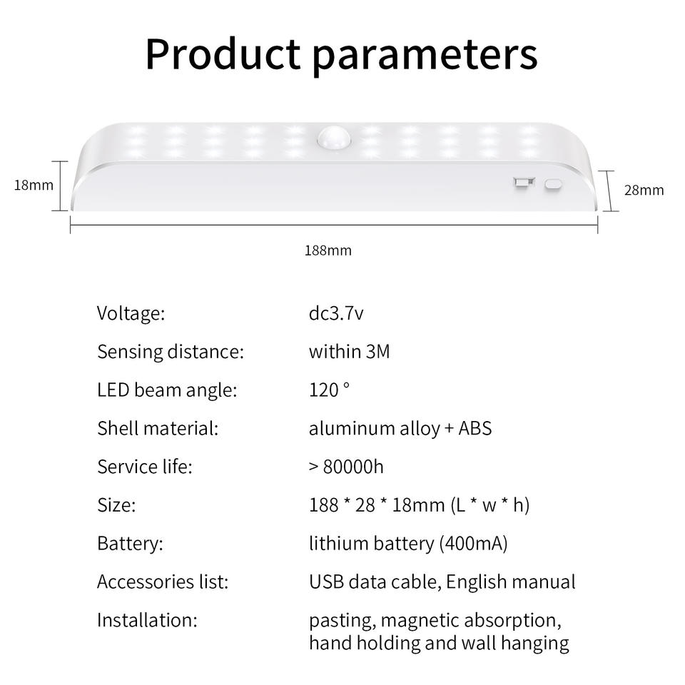 Lámpara de Armario con 30 LED, Recargable, con Sensor Infrarrojo, Luz Nocturna para Dormitorio, Entrada, Armarios, Versión de Luz Cálida, 25000 Horas