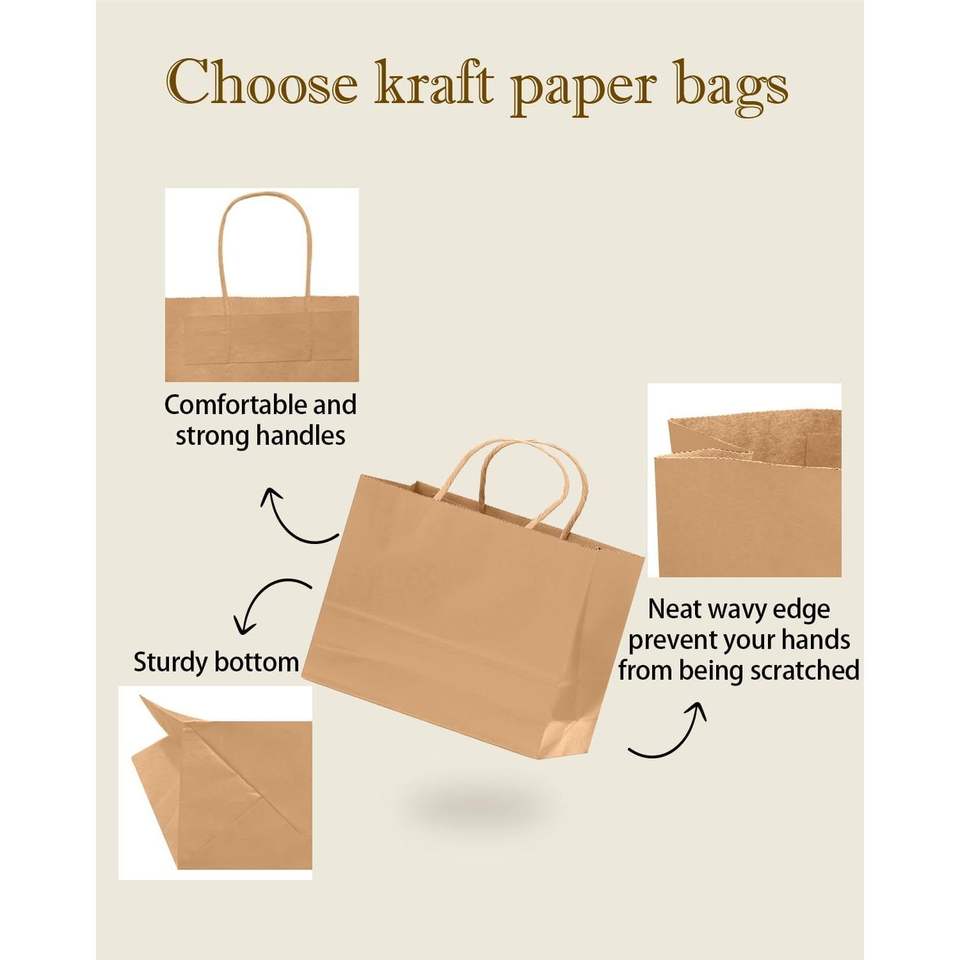 Paquete de 30 Bolsas de Regalo de Papel Marrón Grandes con Asas, 13"x4.5"x10", Bolsas para Fiestas al por Mayor