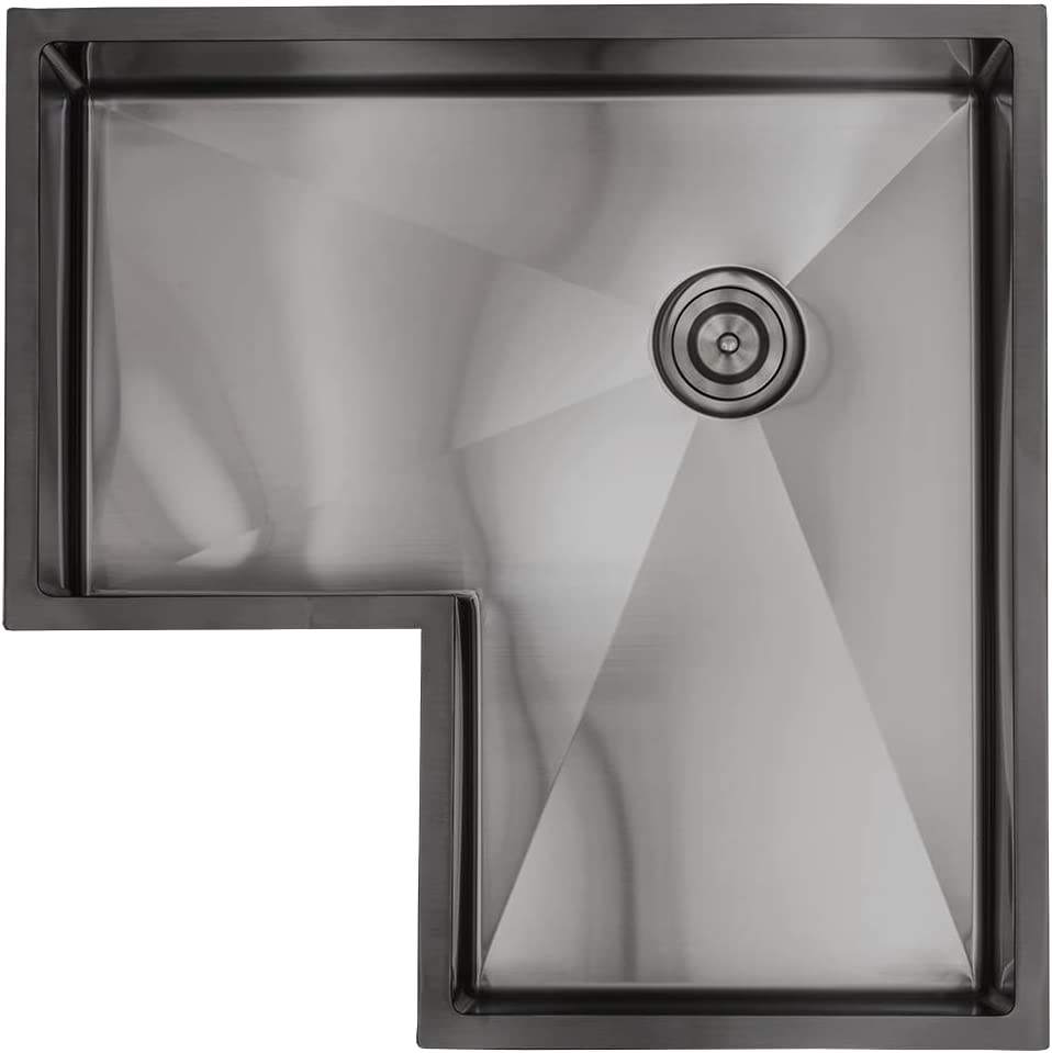 Fregadero de cocina de esquina para estación de trabajo de 30 ", cuenco individual negro, fregadero de radio R10 de acero inoxidable de calibre 16 con resistente a arañazos y manchas