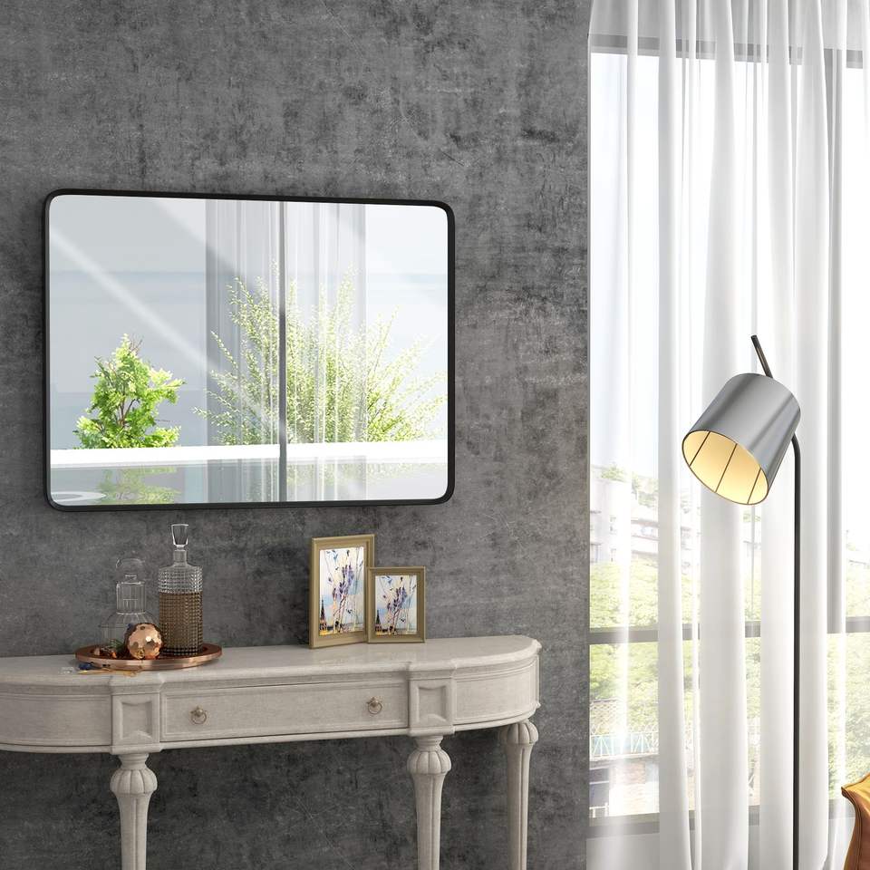 Espejo de pared con marco Rectangular de aluminio de 30X22 pulgadas, decoración decorativa para el hogar, esquina de baño, cuelga tecnología flotante de 5 capas para