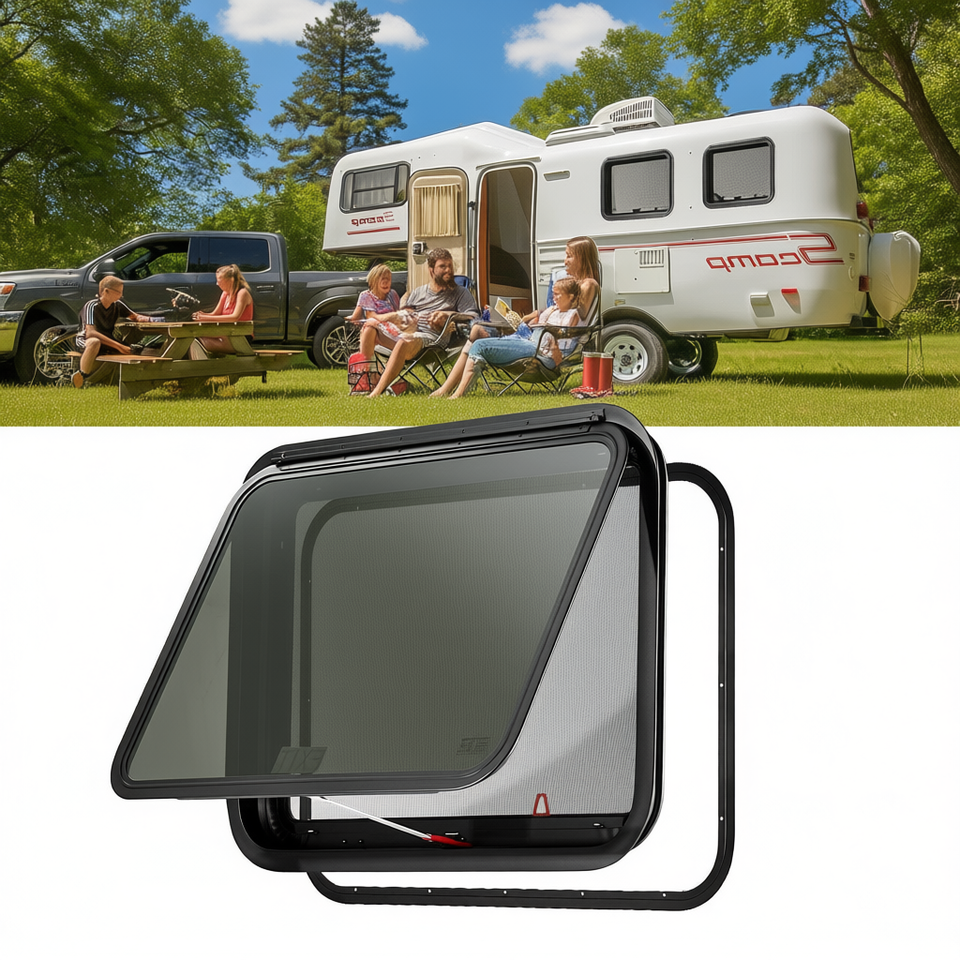 Ventana de Emergencia Abatible de 30x22 Pulgadas, Manual, Montada Lateralmente, Impermeable, Accesorio Exterior para RV con Mosquitera
