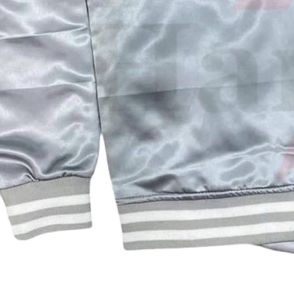 Chaqueta Bomber Vintage para Hombre, 300 GSM, Lona Impermeable, Cortavientos, Secado Rápido, Transpirable, Color Plateado, Cierre Completo, Manga Larga, Frente con Cierre