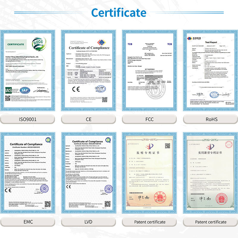 CE ROHS FCC CCC ISO9001