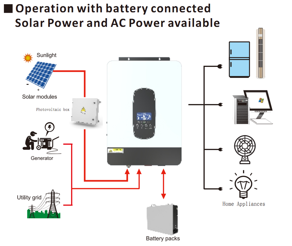 Inversor de corriente de onda sinusoidal de 3000W 24V 220V Inversor solar híbrido Mppt 3kw Dc a Ac Inversor 24V a 220V Inversor solar fuera de la red