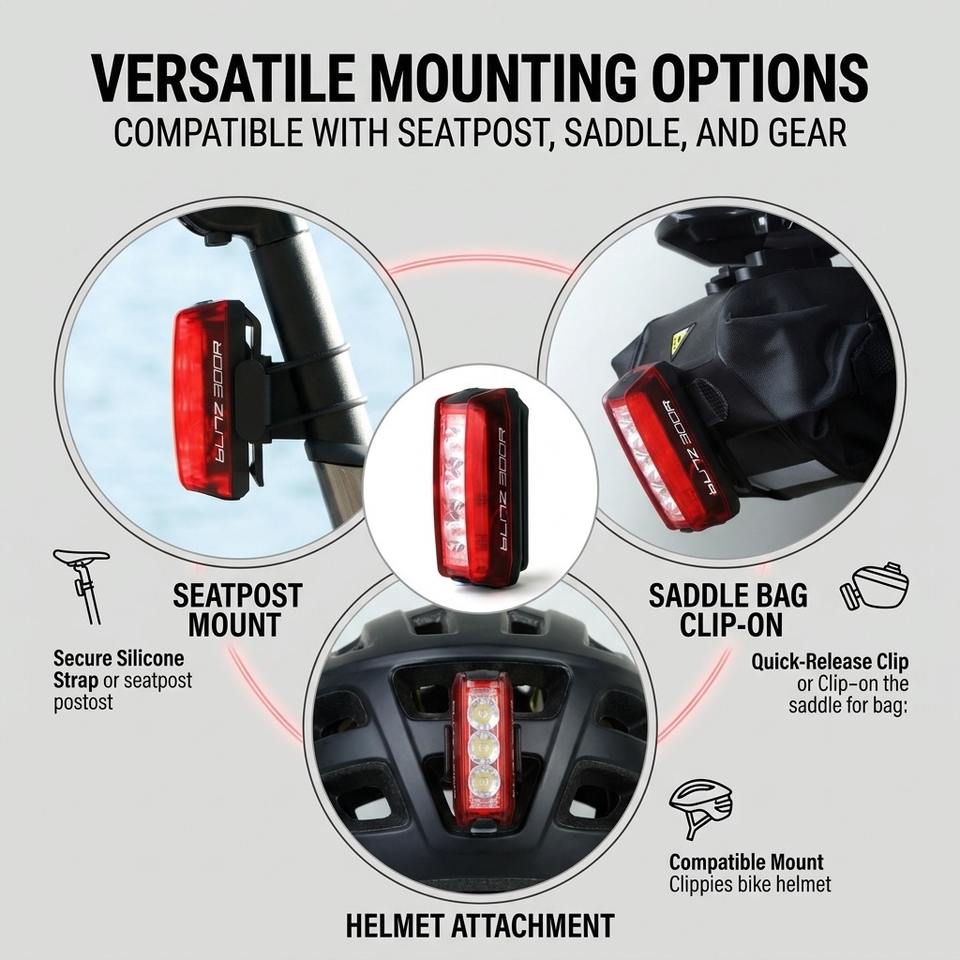 Múltiples Opciones de Montaje:Tija de sillín, sillín o clip-on