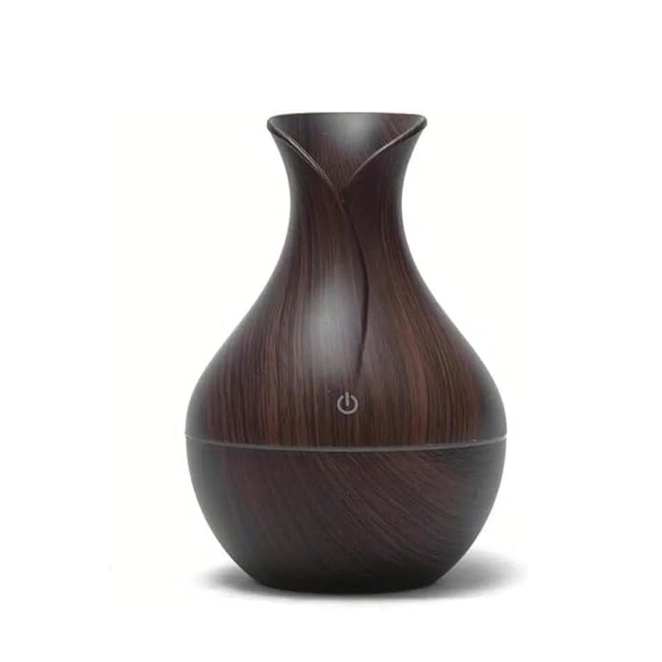 Humidificador USB con Forma de Florero de 300 ml, Humidificador Ultrasónico, Difusor de Aroma con Grano de Madera, Atomizador de Aceites Esenciales para el Hogar