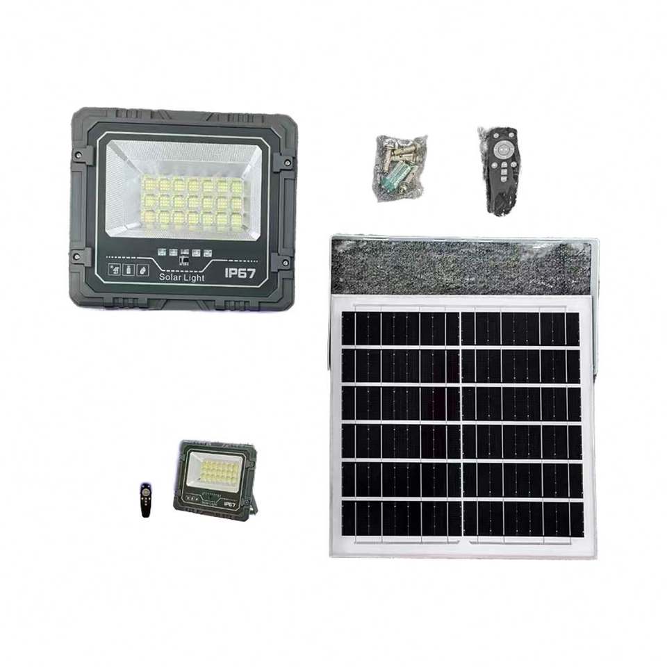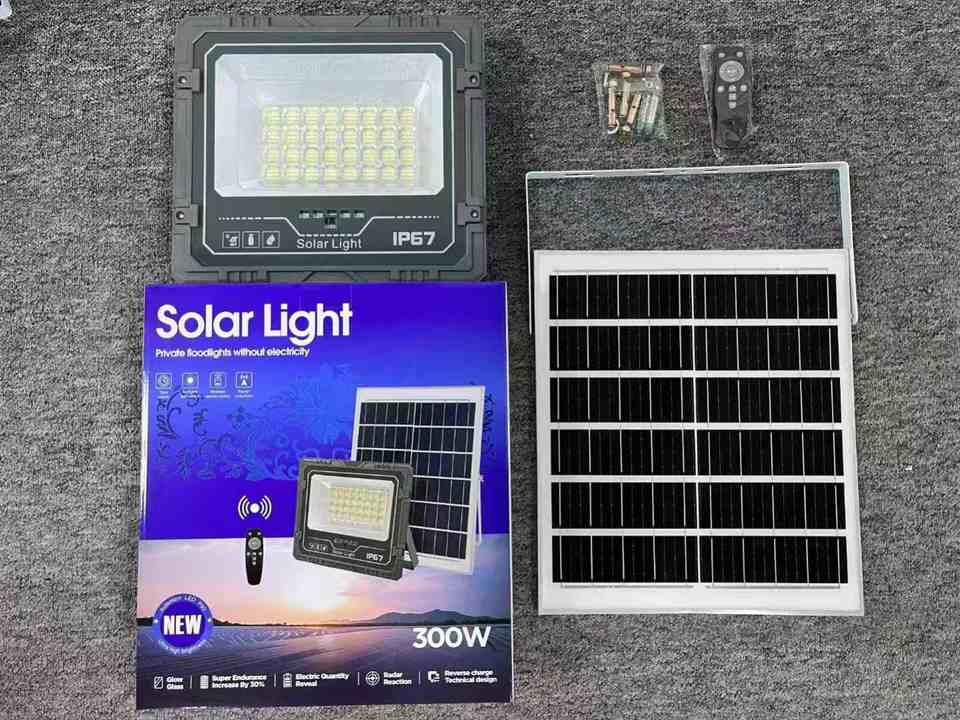 Reflectores LED Solares de 300W y 200W, Luz Blanca Cálida, Control Remoto, Cuerpo de ABS/Plástico, Certificación ROHS, IP66/IP67, para Hogar y Jardín