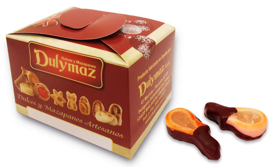 Caramelos Dulymaz de Alta Calidad, 300g, Cubiertos con Chocolate y Almendras, Forma de Mazapán, Ingredientes de Mermelada de Limón, Forma Sólida, Rico Sabor a Chocolate