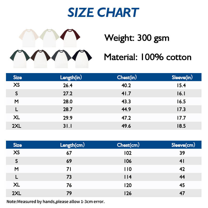 Camiseta raglán de algodón de 300g/m² con cuello redondo y estética juvenil