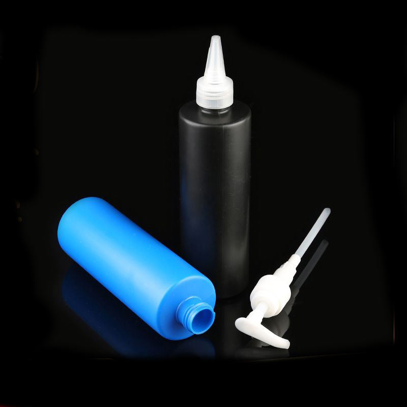 300ml Botellas de prensa de color hechas a medida Botella de plástico con pegamento cosmético para uñas con tapa de diferentes tipos