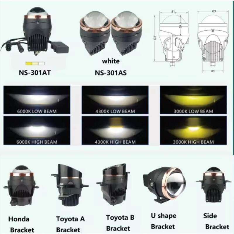 301AT 110Watts Lente de Proyector LED de Triple Color de 3 Pulgadas, Luz Antiniebla de Haz Alto/Bajo, 12V 24V para Toyota Chr Hikari Ultra, Accesorios para Automóviles