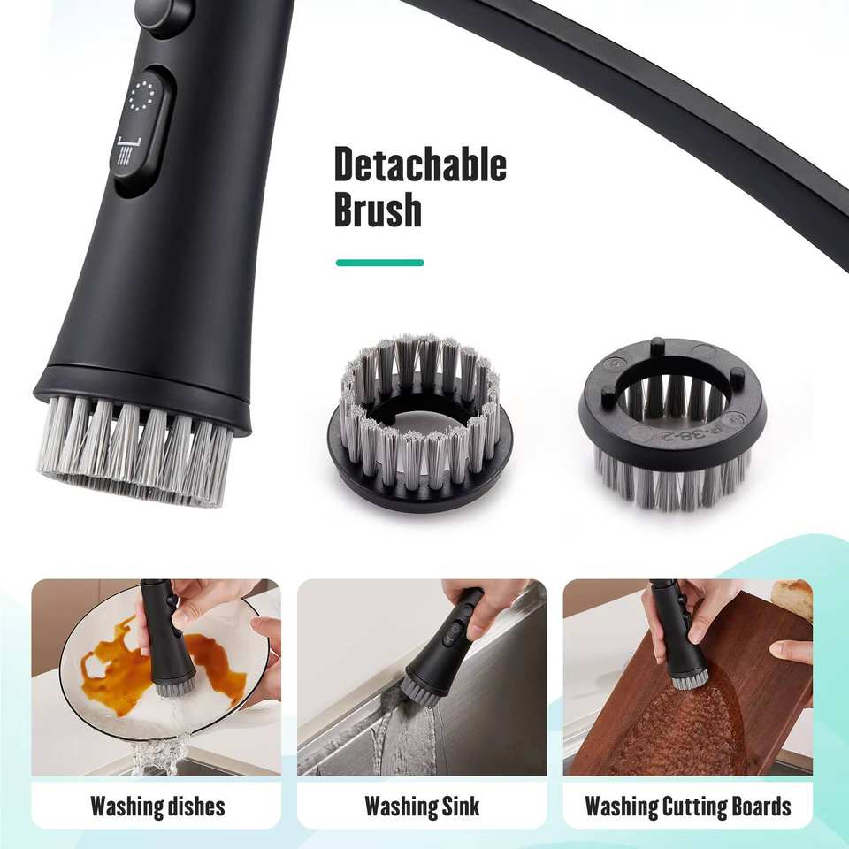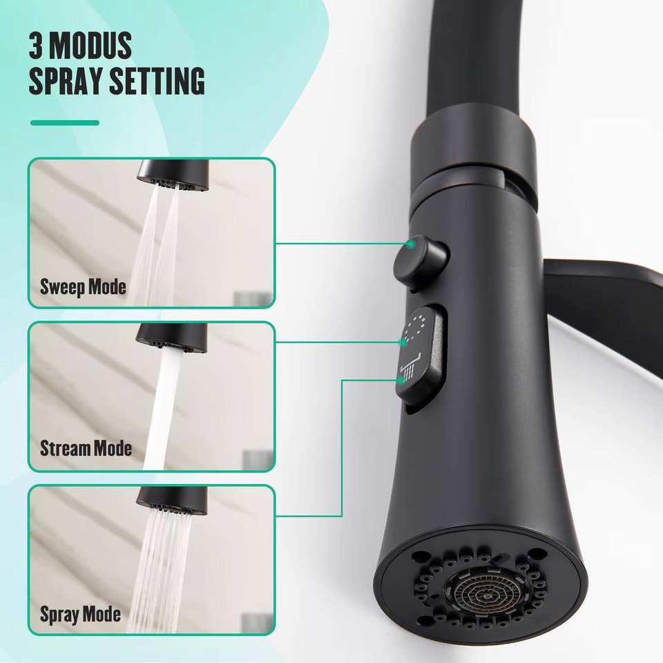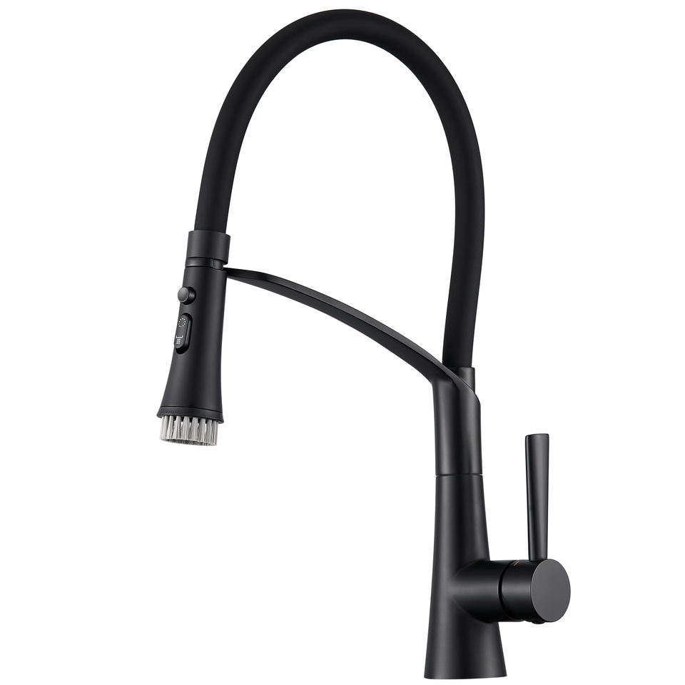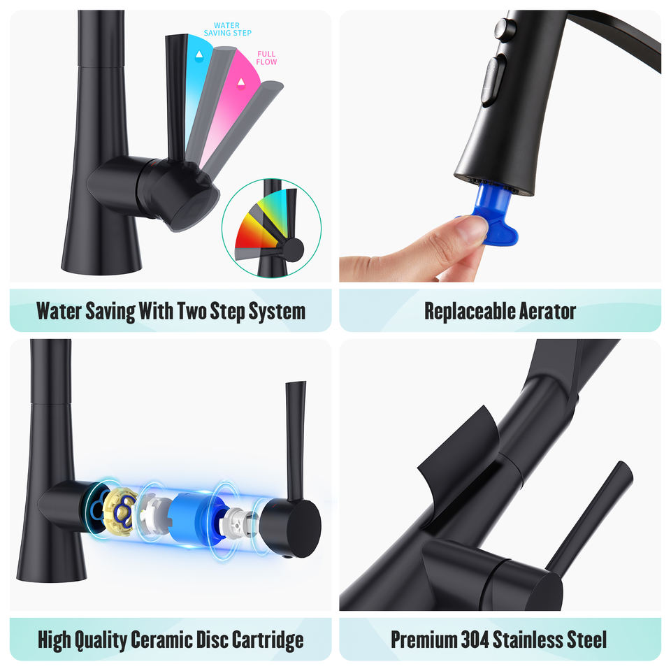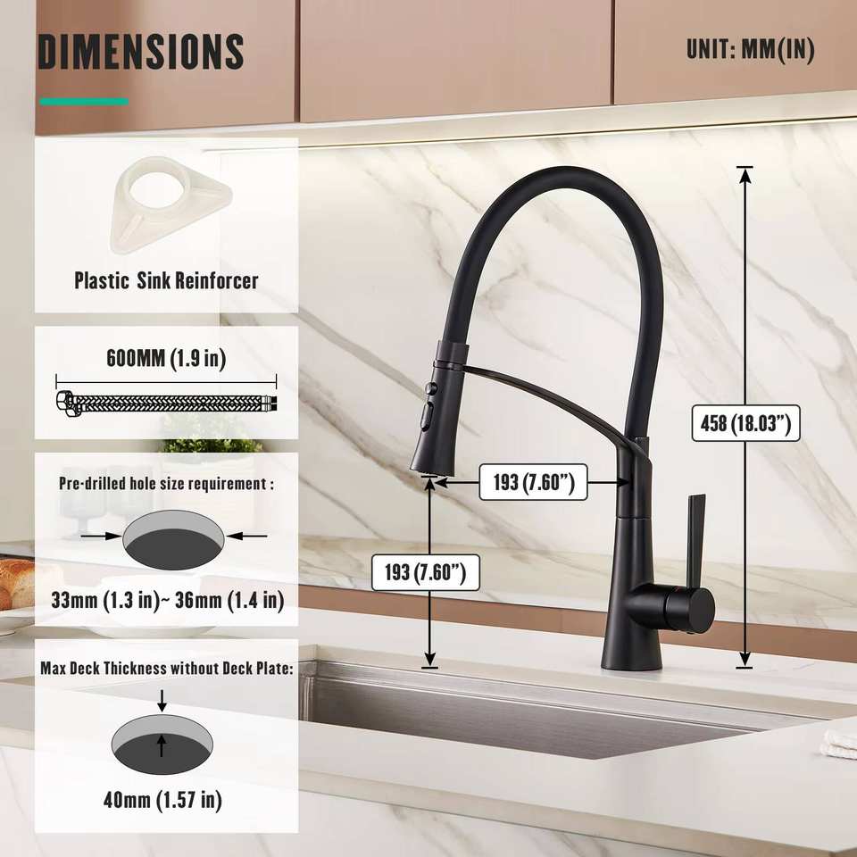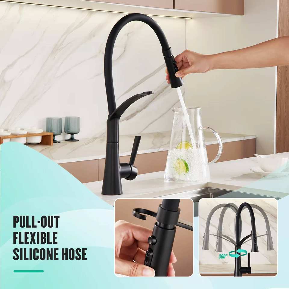 Grifo de Cocina Extraíble de Acero Inoxidable 304 con Acabado Negro Mate, Monomando, con Rociador Manual, Certificado CUPC