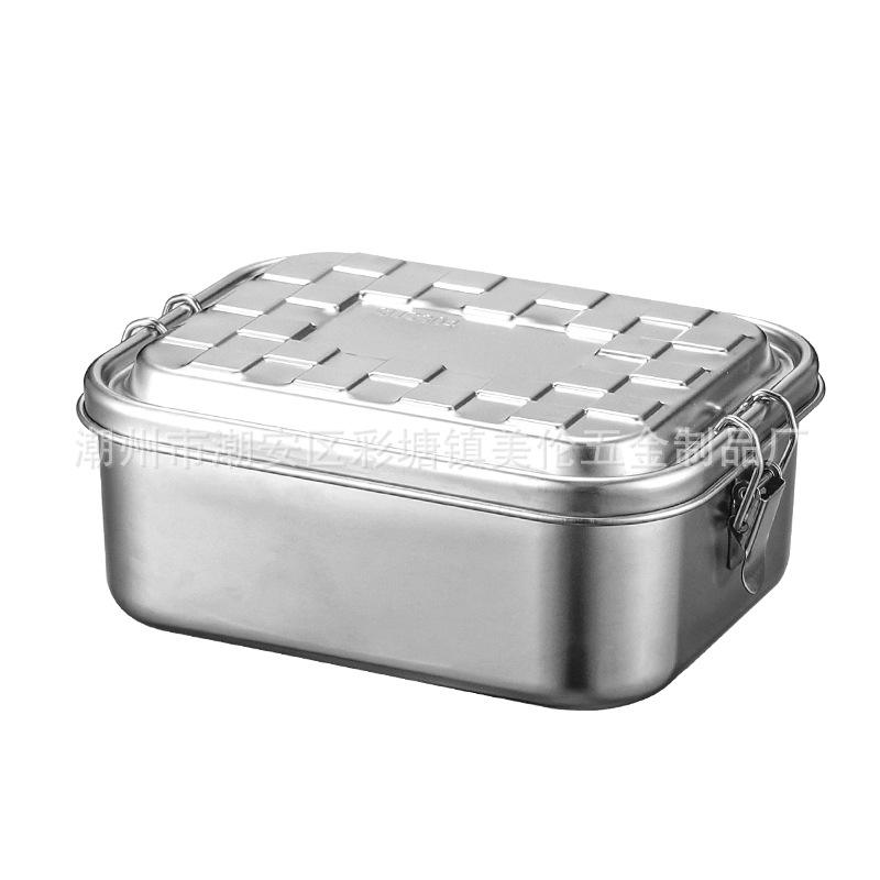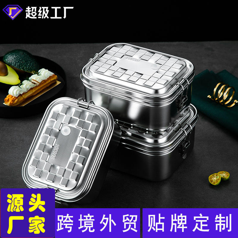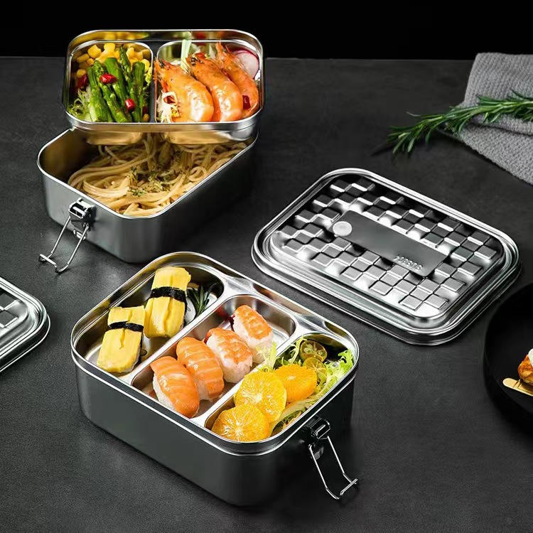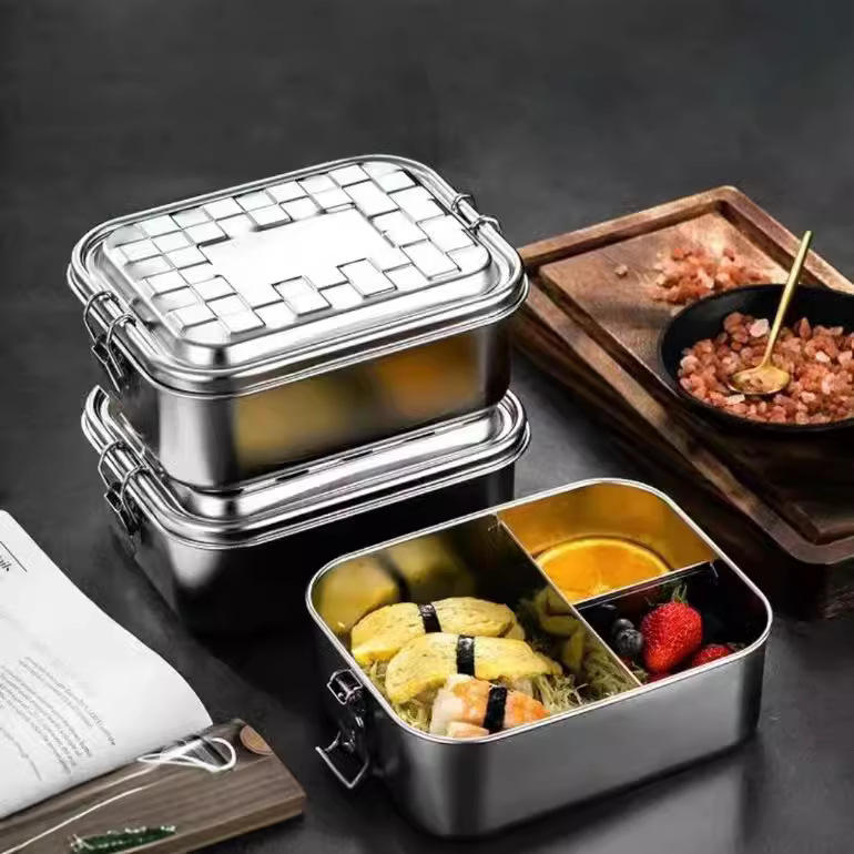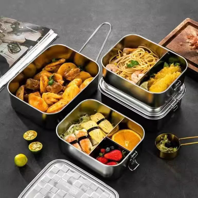 Lonchera de acero inoxidable 304 con compartimentos cuadrados de doble capa para estudiantes y trabajadores de oficina.