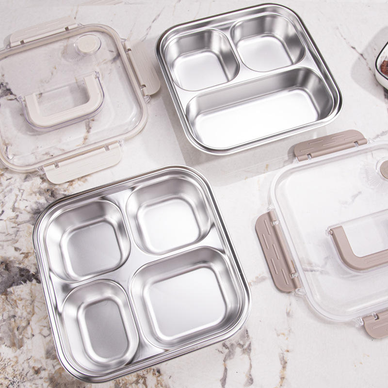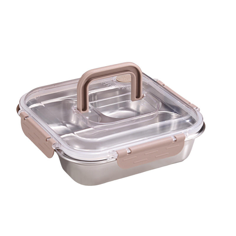 Lonchera compartimentada de acero inoxidable 304 con tapa de plástico rectangular para uso en oficina y estudiantes
