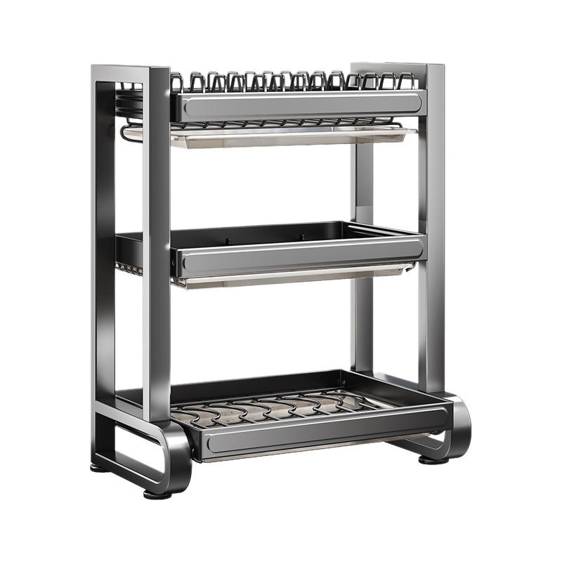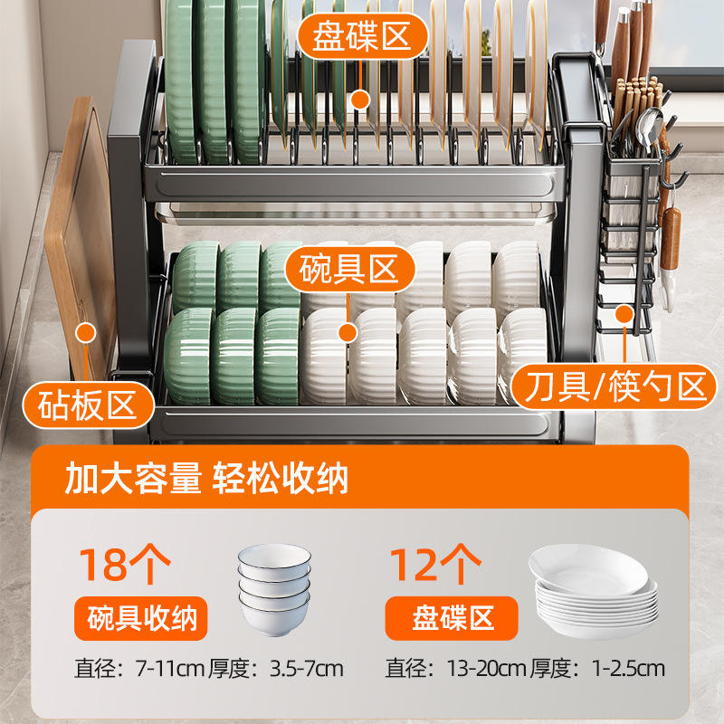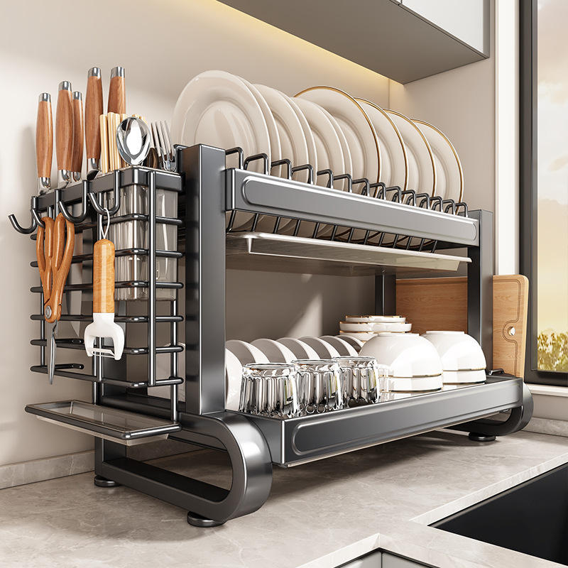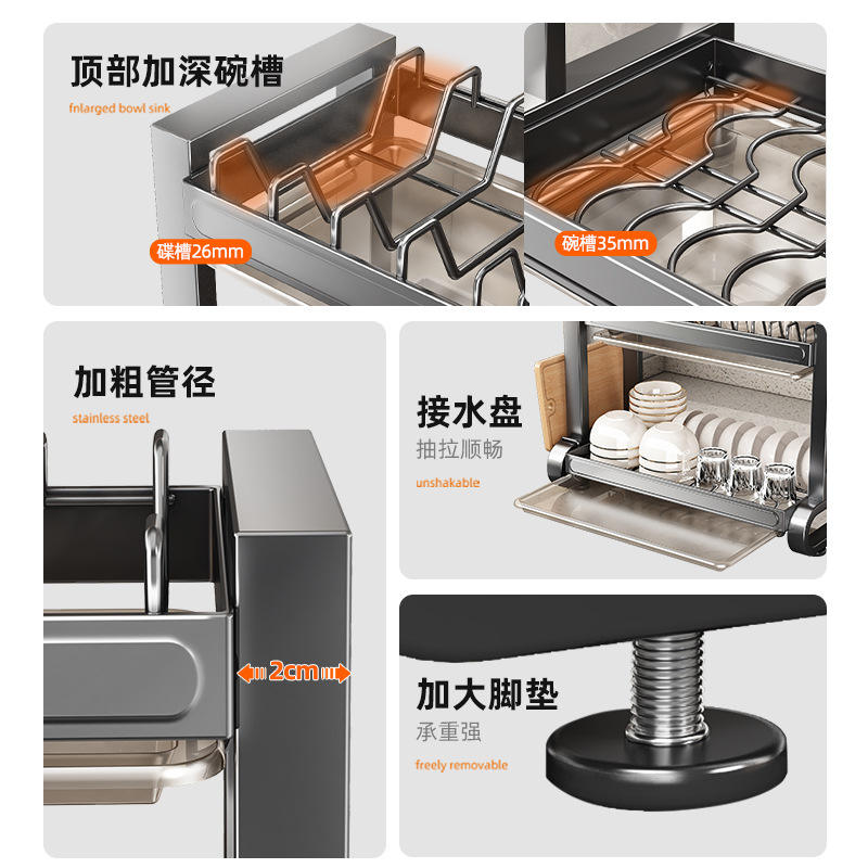 Estante para platos de acero inoxidable 304, tamaño L, multicapa, con bandeja, de secado rápido, para almacenamiento en la cocina, para cuencos, platos y palillos
