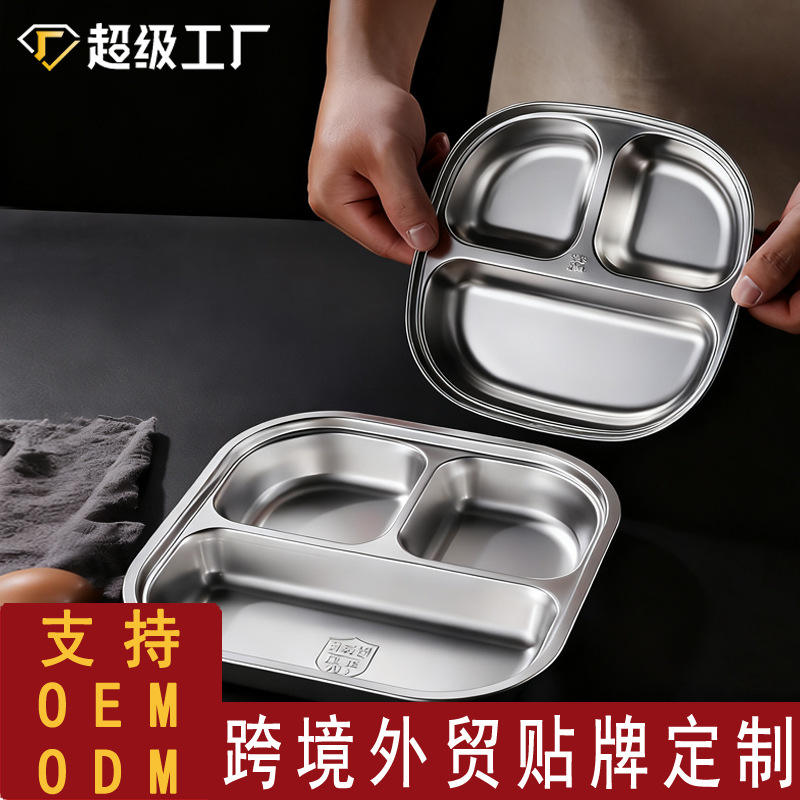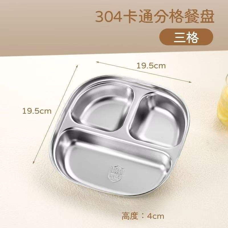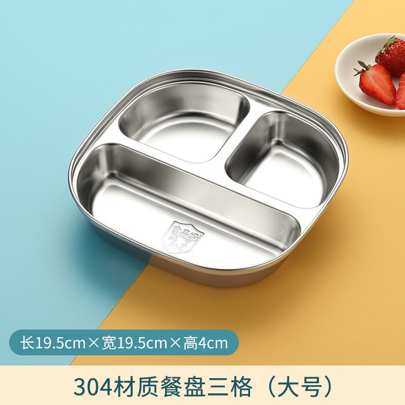 Bandeja dividida de acero inoxidable 304 para niños y estudiantes, plato rectangular poco profundo con tres compartimentos