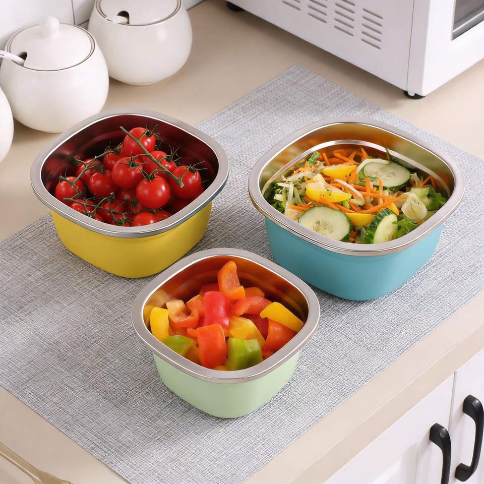 Juego de recipientes de almacenamiento de alimentos de tres piezas con recubrimiento en polvo