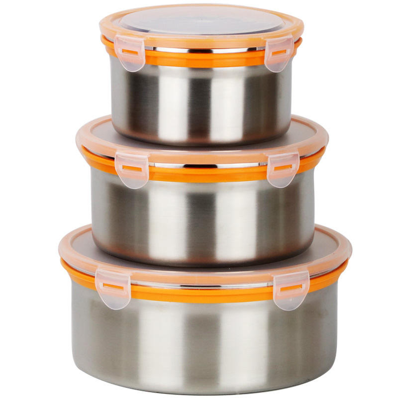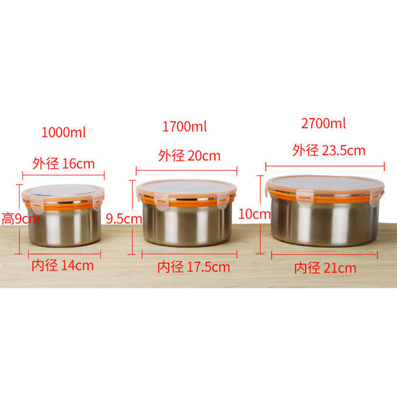 Recipientes de acero inoxidable 304 para almacenamiento de alimentos, loncheras redondas herméticas de 1000ml, 1700ml, 2700ml para viajes, picnics y camping