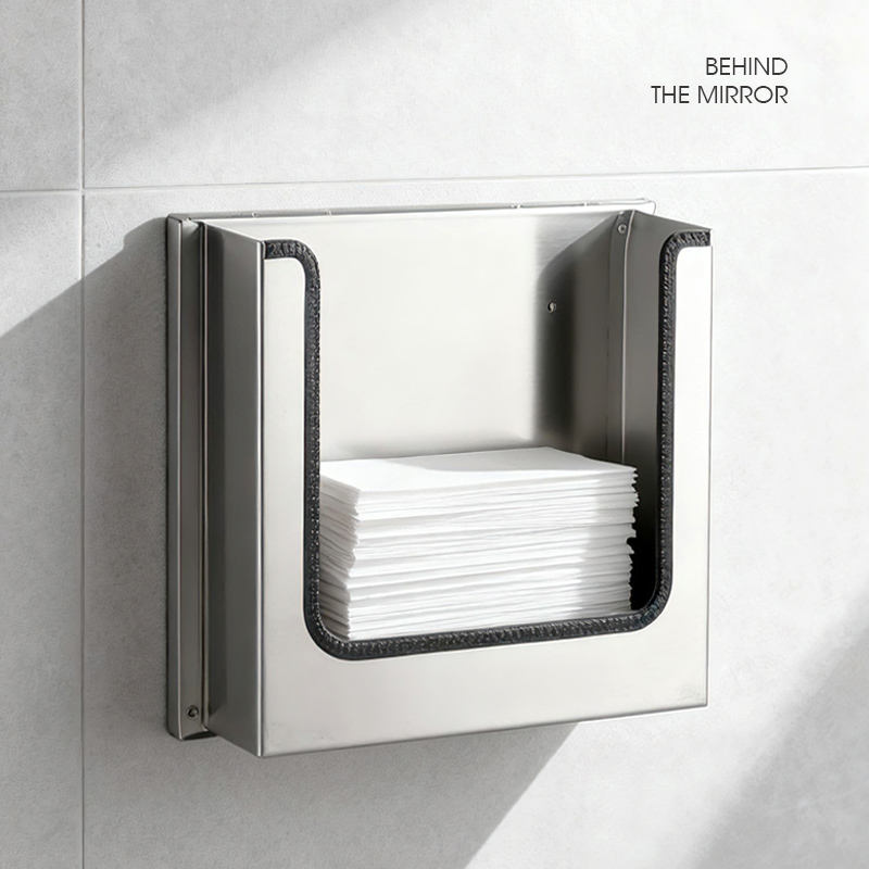Nombre del Producto:Dispensador de jabón de papel para baño detrás del espejo con secador de manos