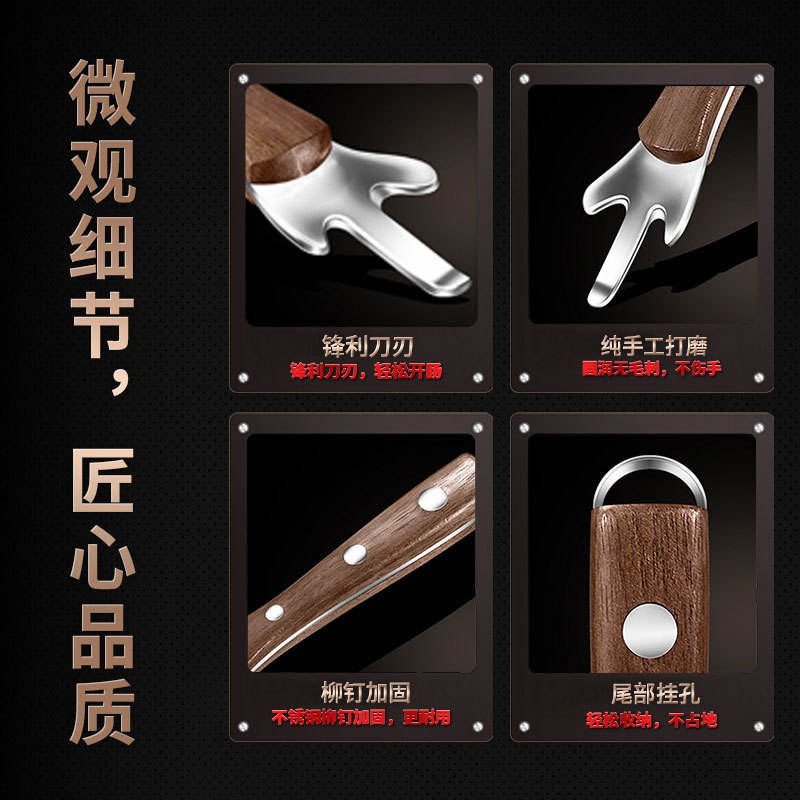 Especificación:Bisturí intestinal de madera de nogal y acero inoxidable 304.