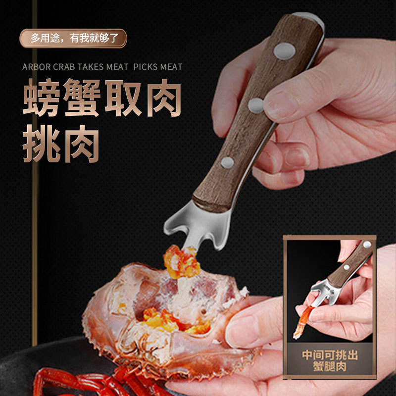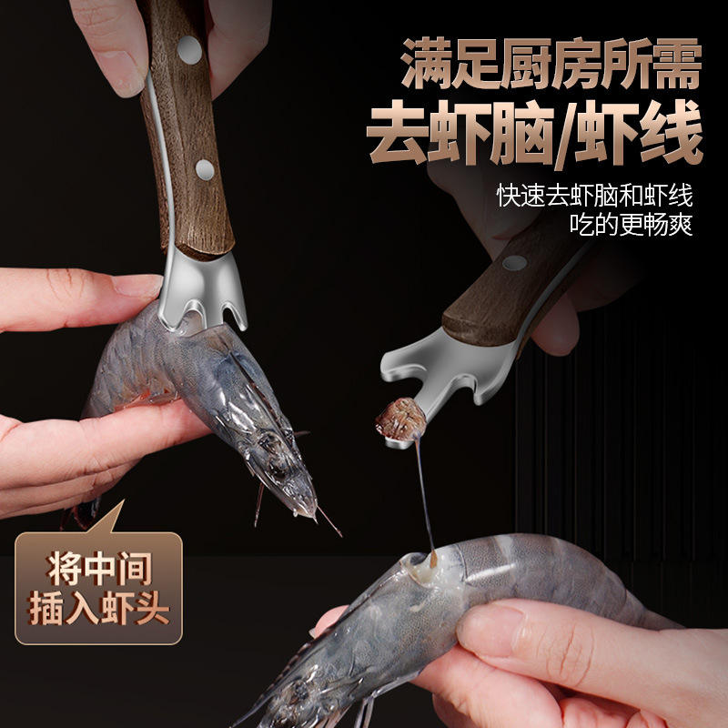 Limpiador intestinal de acero inoxidable 304 con mango de madera de nogal, herramienta multifuncional para mariscos, para desvenar pollo, pato, ganso y camarones