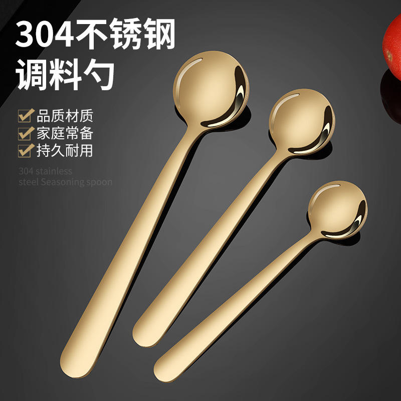 Juego de cucharas medidoras de acero inoxidable 304, color dorado, cuchara agitadora duradera para el hogar, para condimentar café