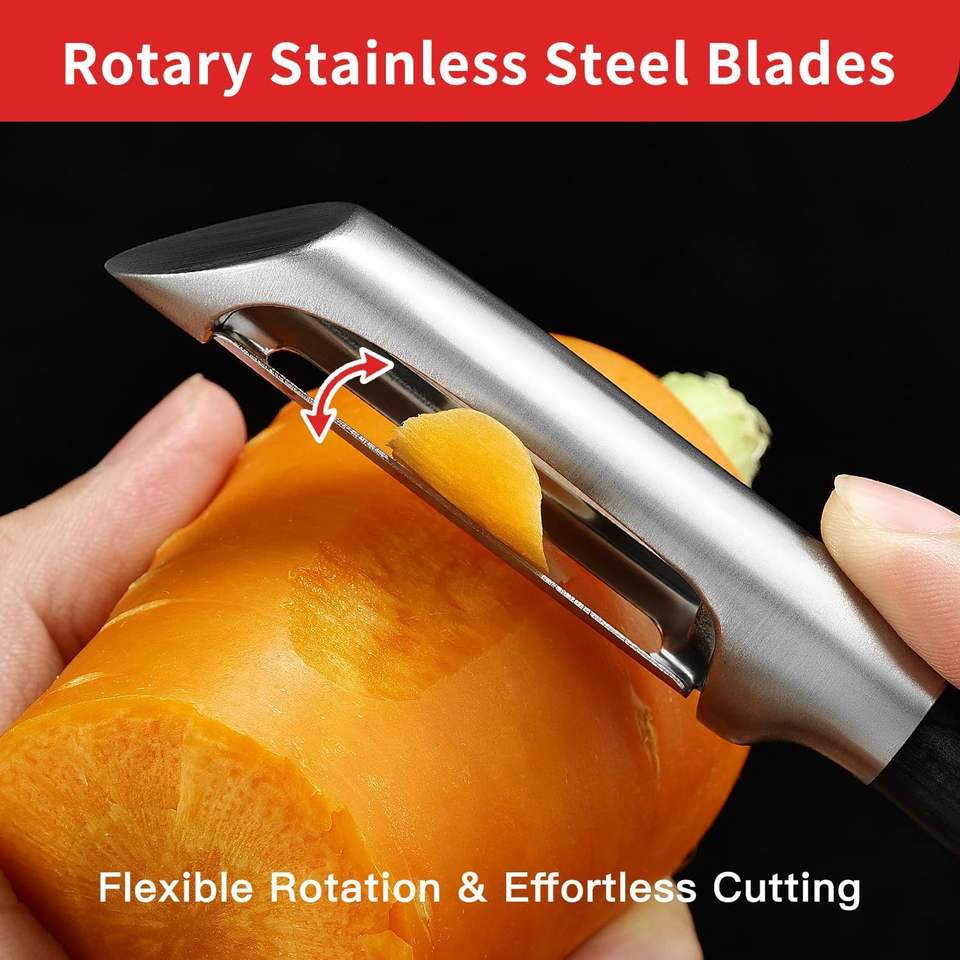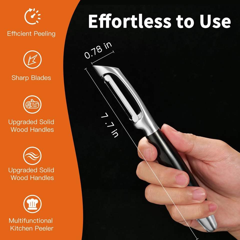 Pelador de Cocina Multifuncional de Acero Inoxidable 304 con Mango de Madera Sólida y Cuchilla Afilada y Duradera para Pelar Frutas y Verduras sin Esfuerzo