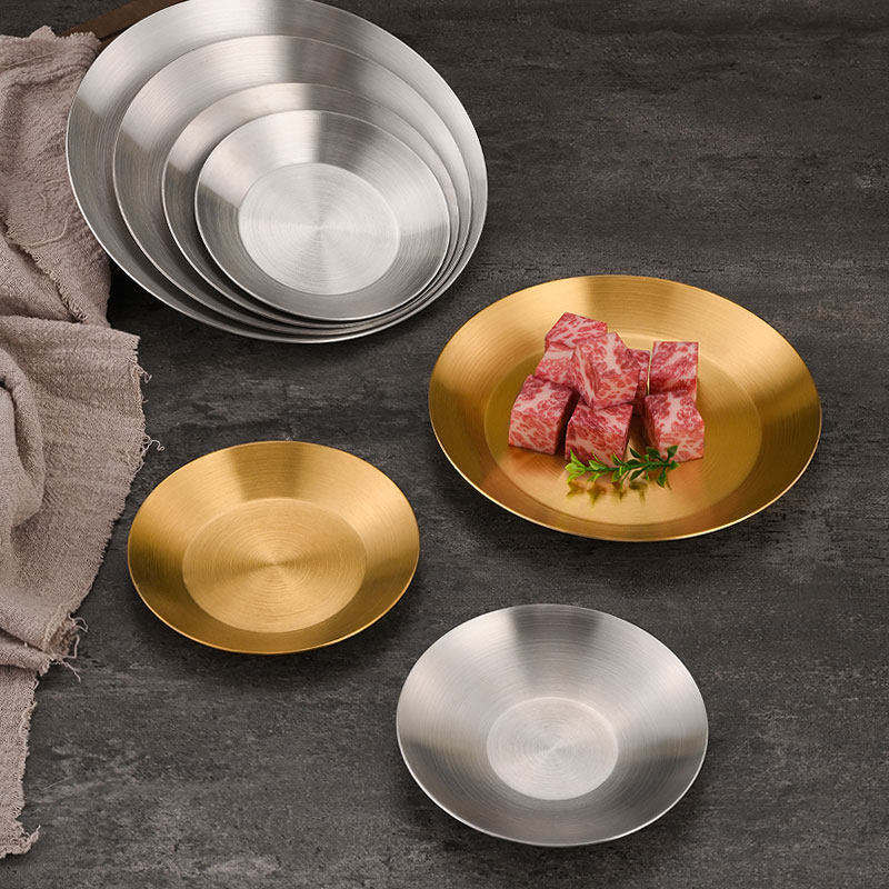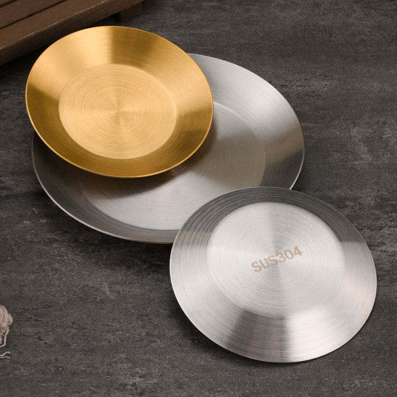 Platos Redondos de Acero Inoxidable 304, Color Sólido Dorado y Plateado, para Fiestas