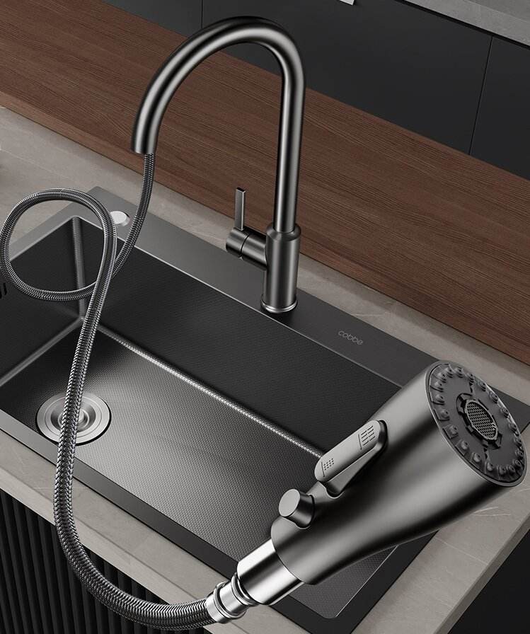 Fregadero de Cocina Grande Individual de Acero Inoxidable 304, Multifuncional, para Lavar Vegetales, con Cuatro Orificios