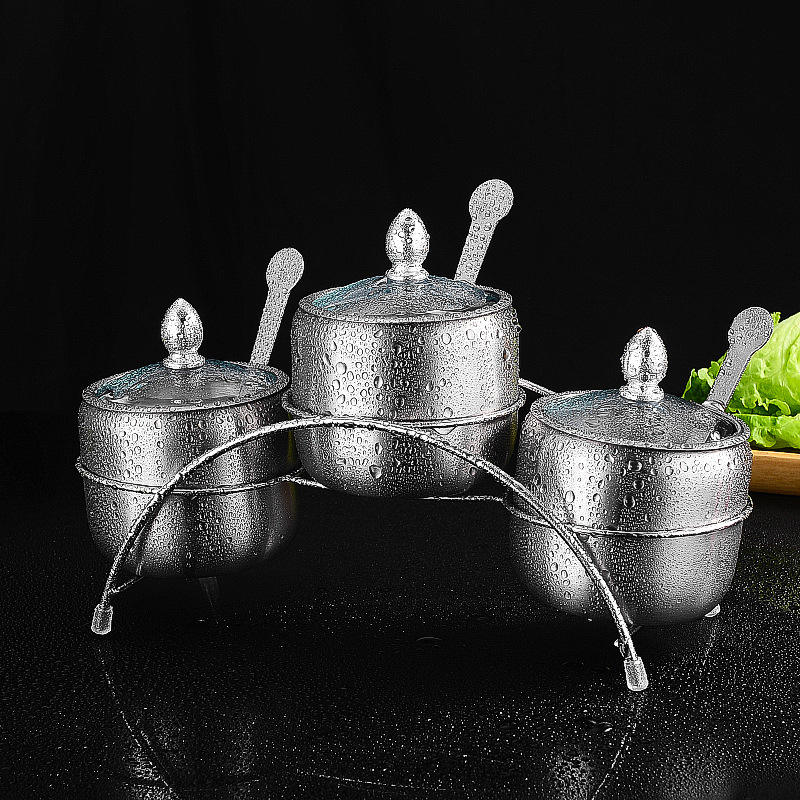 Juego de recipientes para especias de acero inoxidable 304 con tapa metálica en forma de cilindro para almacenamiento en la cocina
