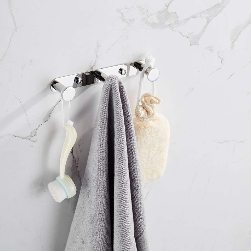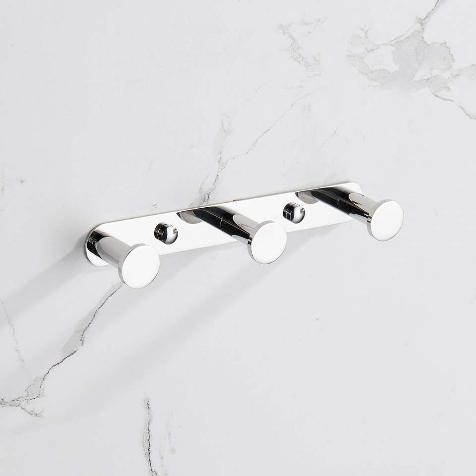 Perchero de Acero Inoxidable 304 con Acabado Brillante y Tres Ganchos para Almacenamiento en el Hogar, Accesorios de Baño