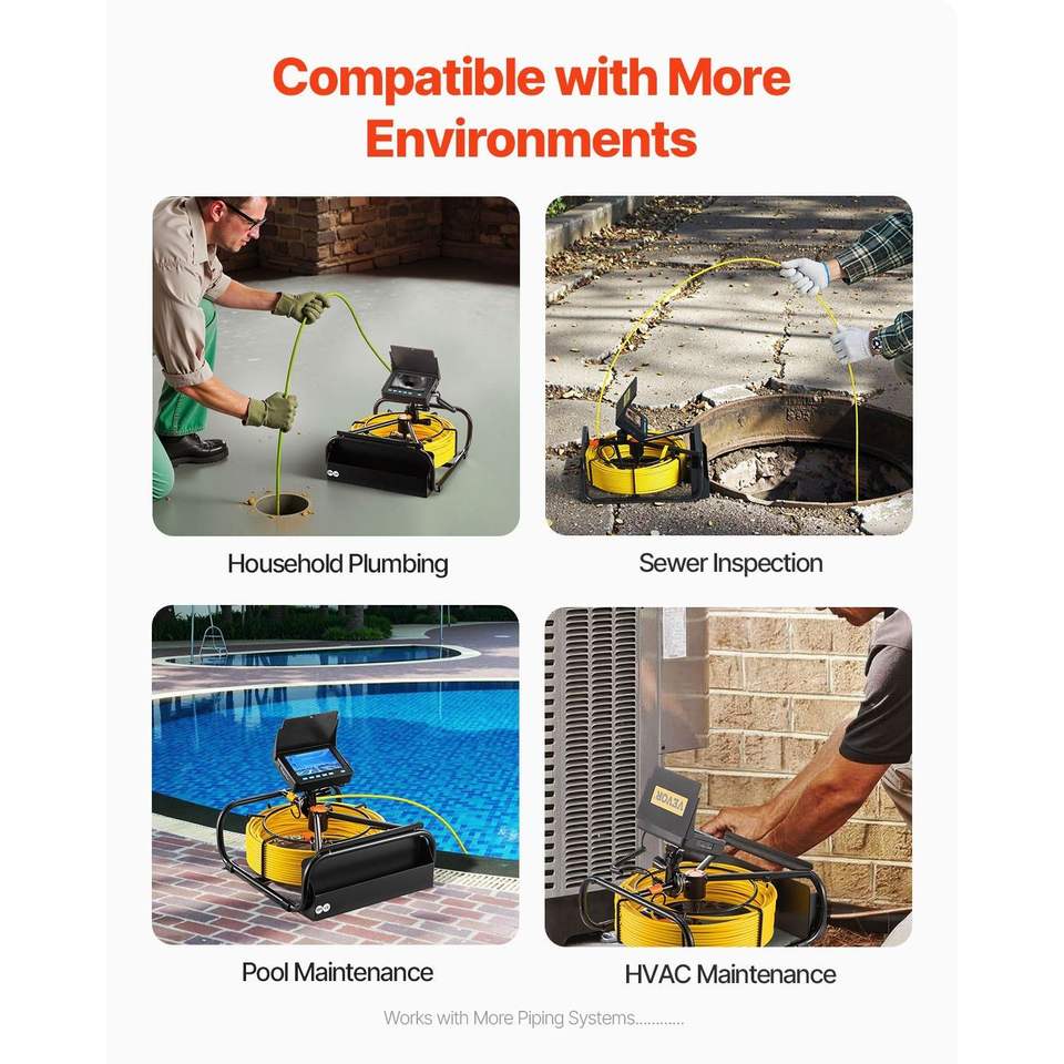 Cámara de Inspección de Tuberías con Cable de 30 Metros, Monitor LCD TFT de 11 cm, Cámara Analógica Impermeable IP68 para Inspección de Conductos