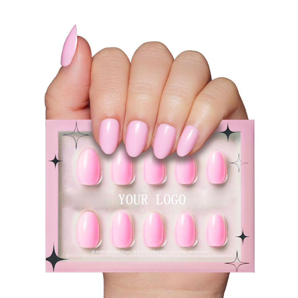 30 Uds 100% PCR postconsumo reciclado Rosa sólido opaco claro Rosa Pastel corto ovalado reutilizable palo uñas postizas prensa en las uñas
