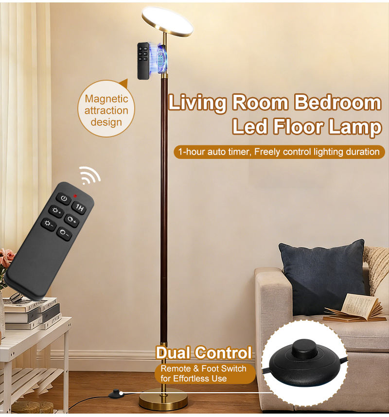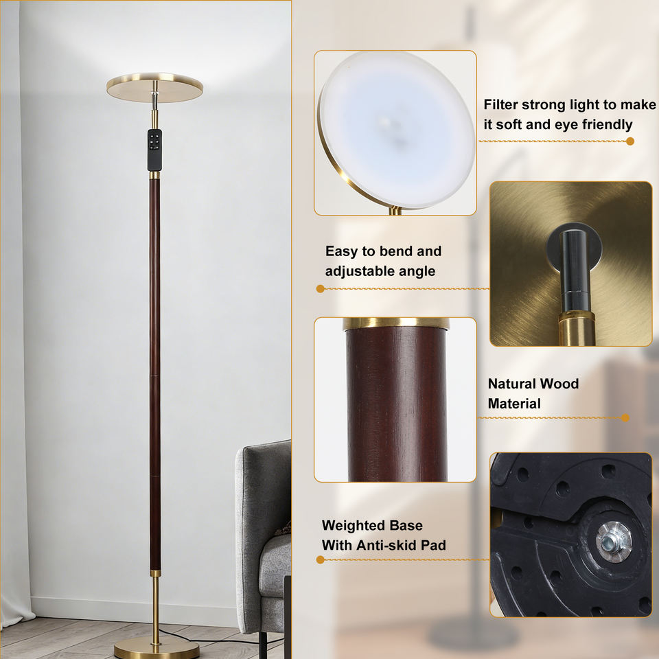 Lámpara de Pie LED de 30W y 3000LM con Control Táctil Remoto, Regulación Continua de Intensidad, Temperatura de Color Ajustable, Diseño Mid-Century, CRI 90